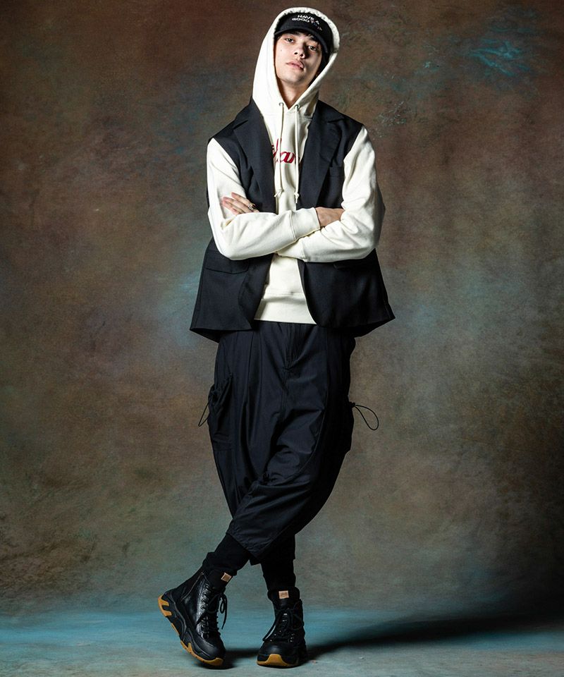 フィッティングもオーバーサイズに設定することでモードな仕上がりにまとめました。