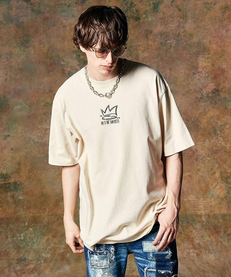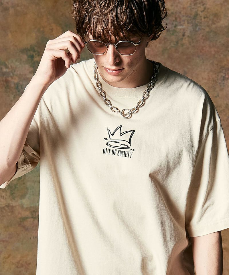 今期のコレクションテーマと世界観をストリートカルチャーのムード漂うワントーンプリントで刻んだOut of Society T-Shirt。