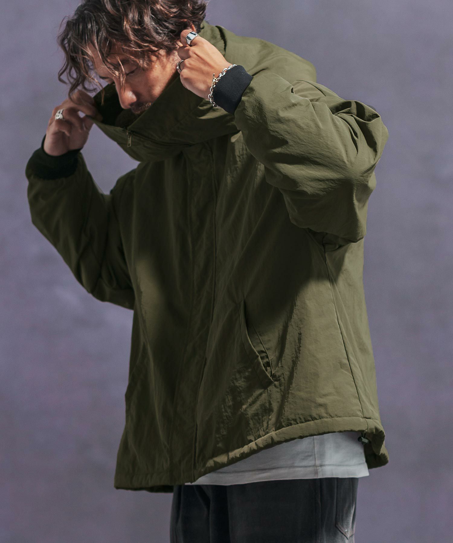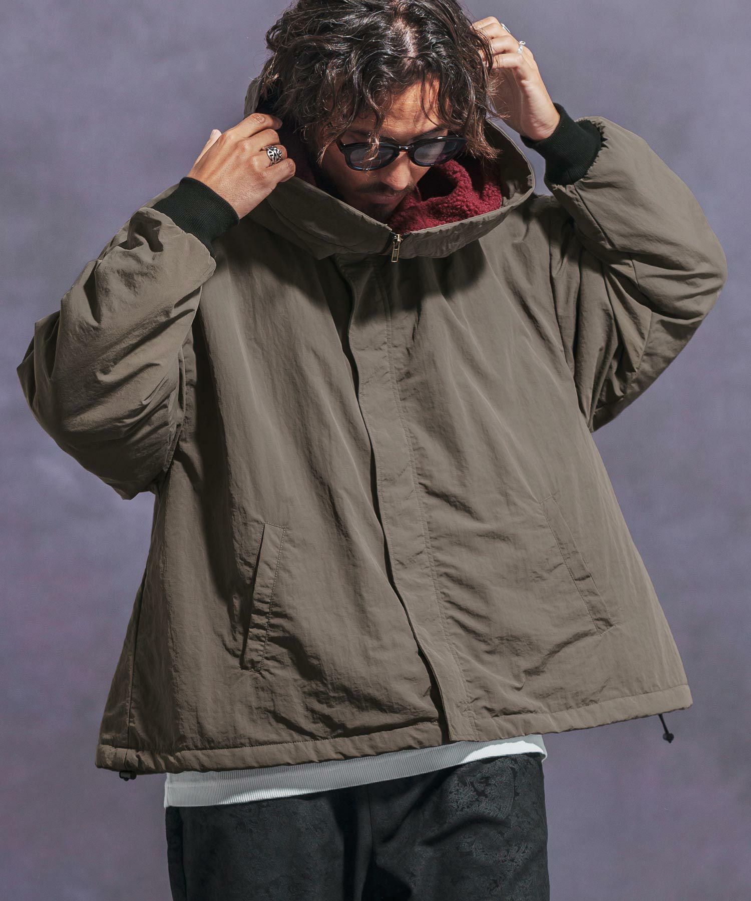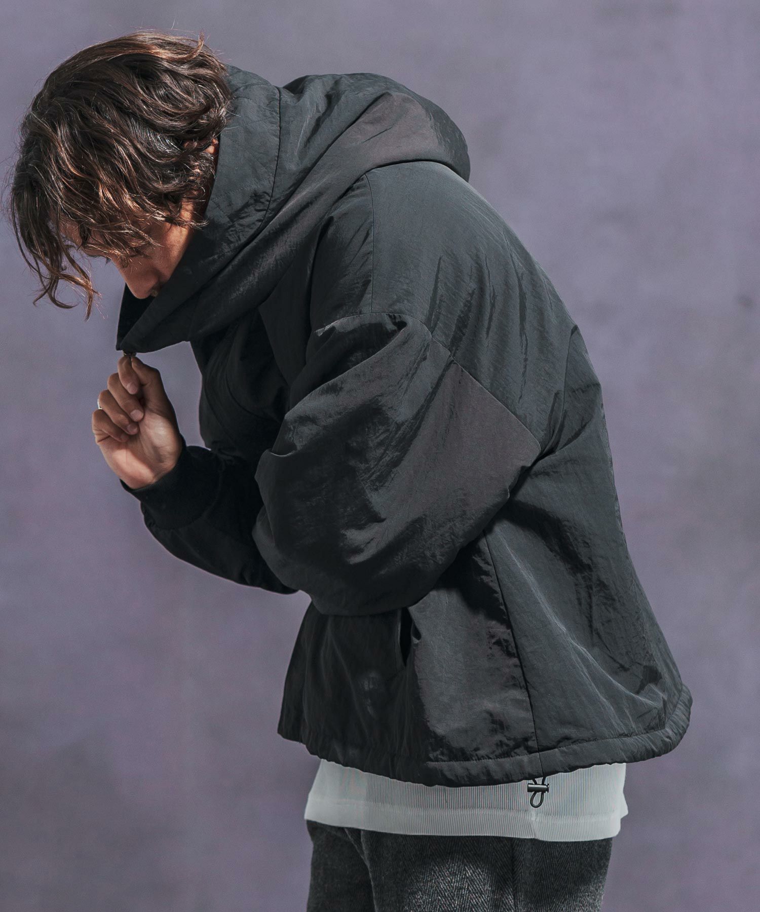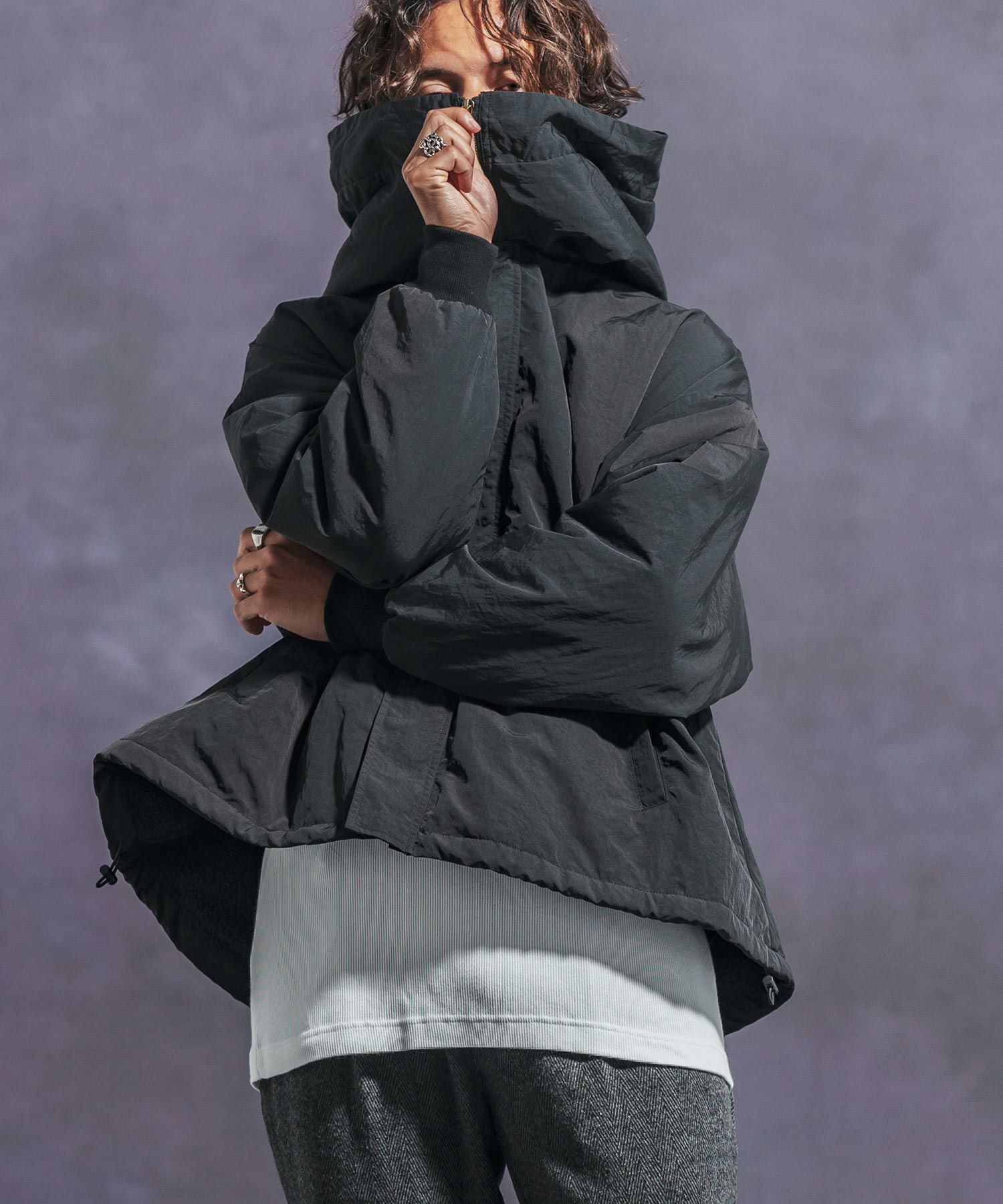【Jih Nunc(ジーヌンク)】 裏ボアナイロンビッグフードジャケット(JIH-R1054)