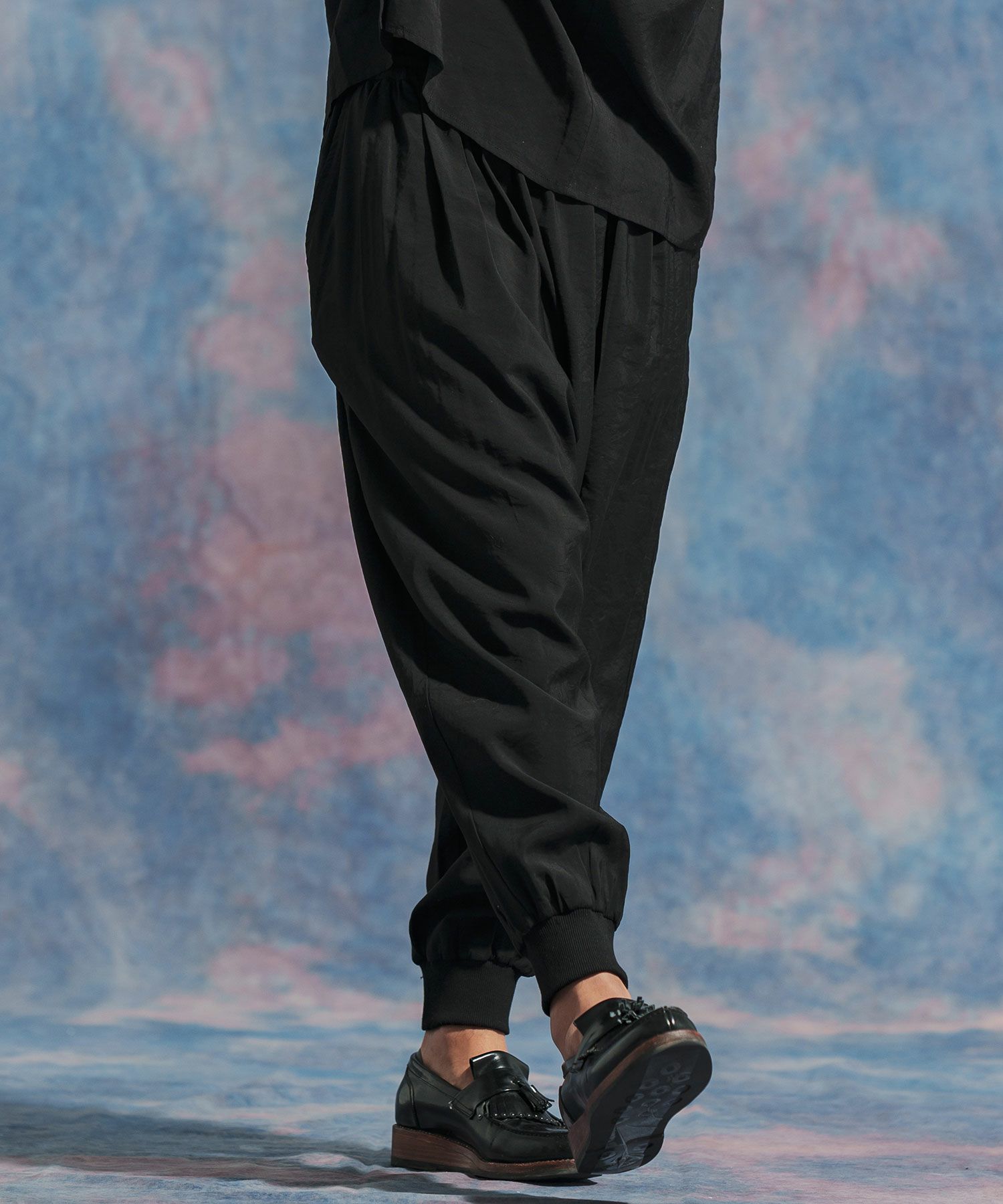 渡り幅などをかなり広めにとったワイドシルエットのバルーンパンツ。