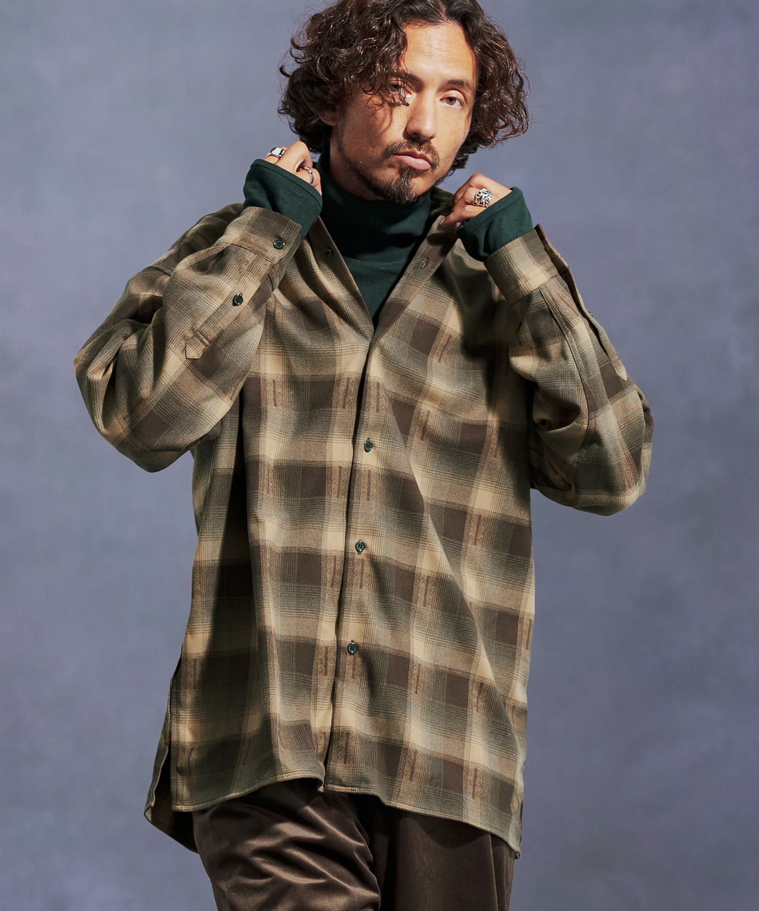 起毛TR生地を使用したオンブレーチェックシャツ。