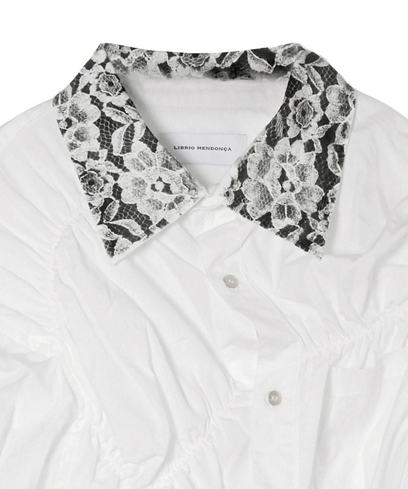他の画像を見る 予約商品 LIBRIO MENDONCA 【LIBRIO MENDONCA(リブリオメンドンサ)】【予約販売2月上旬~中旬入荷】 LACE GATHER SHIRT ギャザーシャツ(LM-26ss-2212) ¥ 60,500 税込 在庫無し お気に入りに登録する