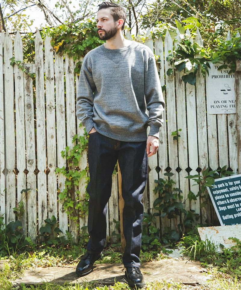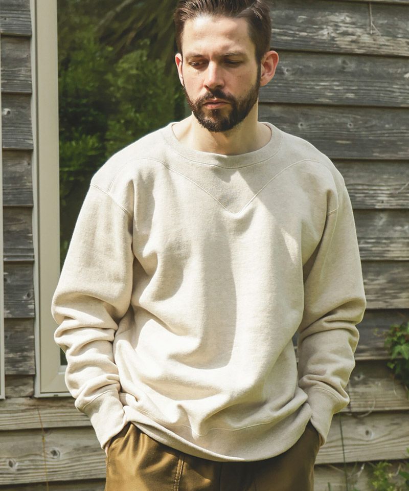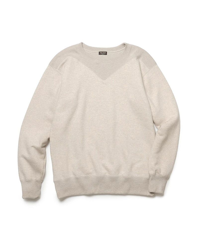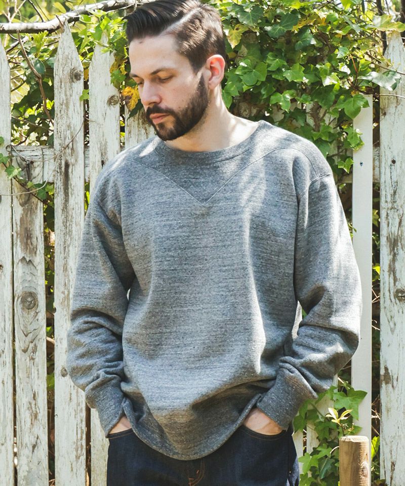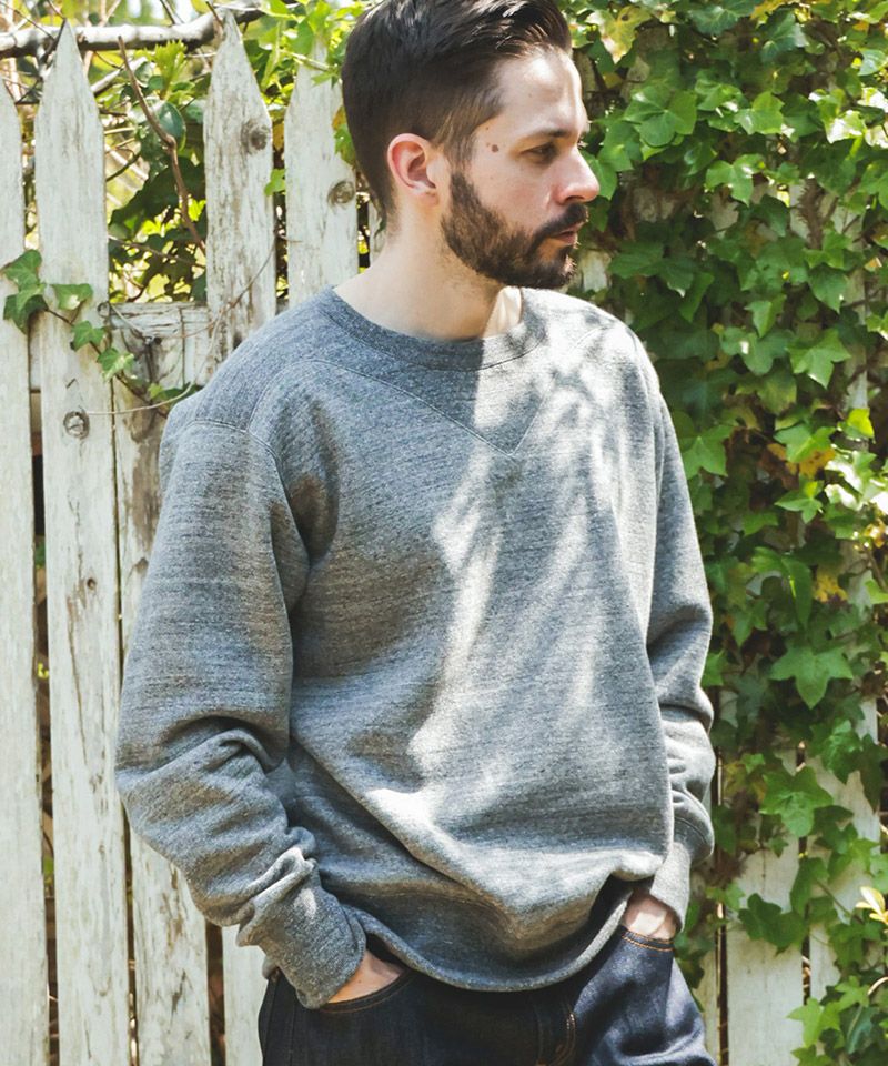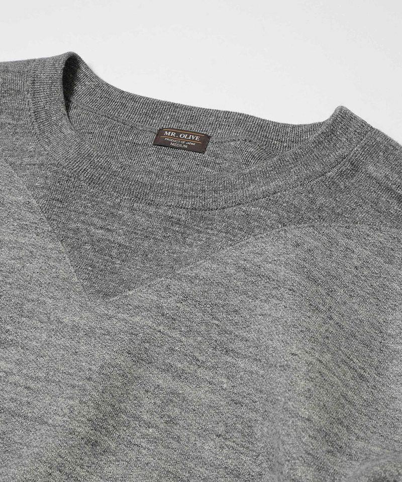 V字のガゼット(汗止め)がショルダーと一体になっているクラシックなスウェットシャツ。