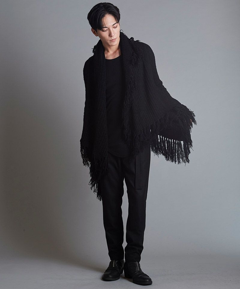 またはストールとして使ってネックラインにボリュームを持たせたりとマルチな着こなしを楽しめるアイテム。