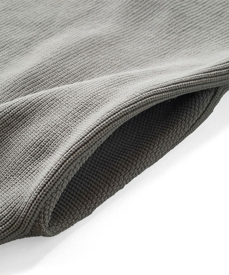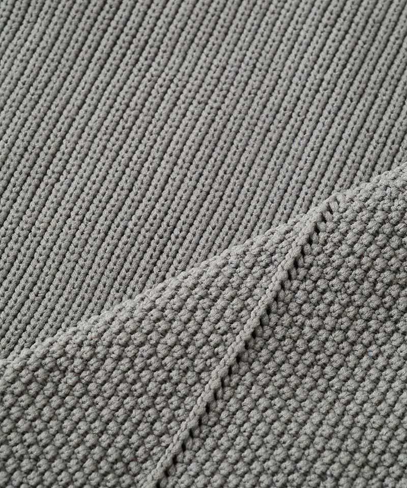 あくまで同色による編み地での切替えの為、控えめながらも程良いアクセントのデザインで、シンプルなスタイルが好みの方にもオススメな一枚。