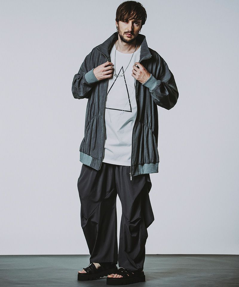 50%OFF【NO ID.(ノーアイディー)】 ギャザードレープロングトラックJKT ジャケット(456006-214B)