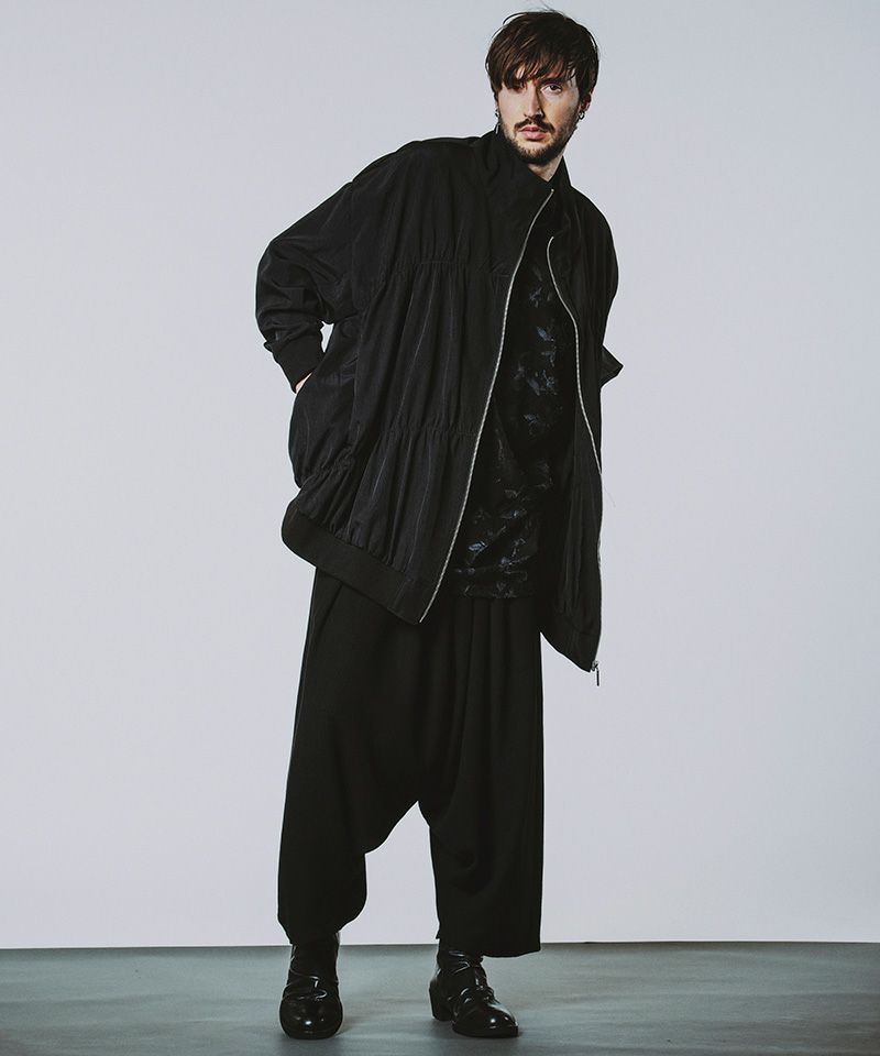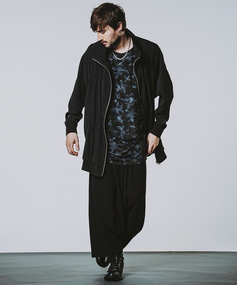 ドレープデザインが特徴的なモードテイストのロングトラックジャケット