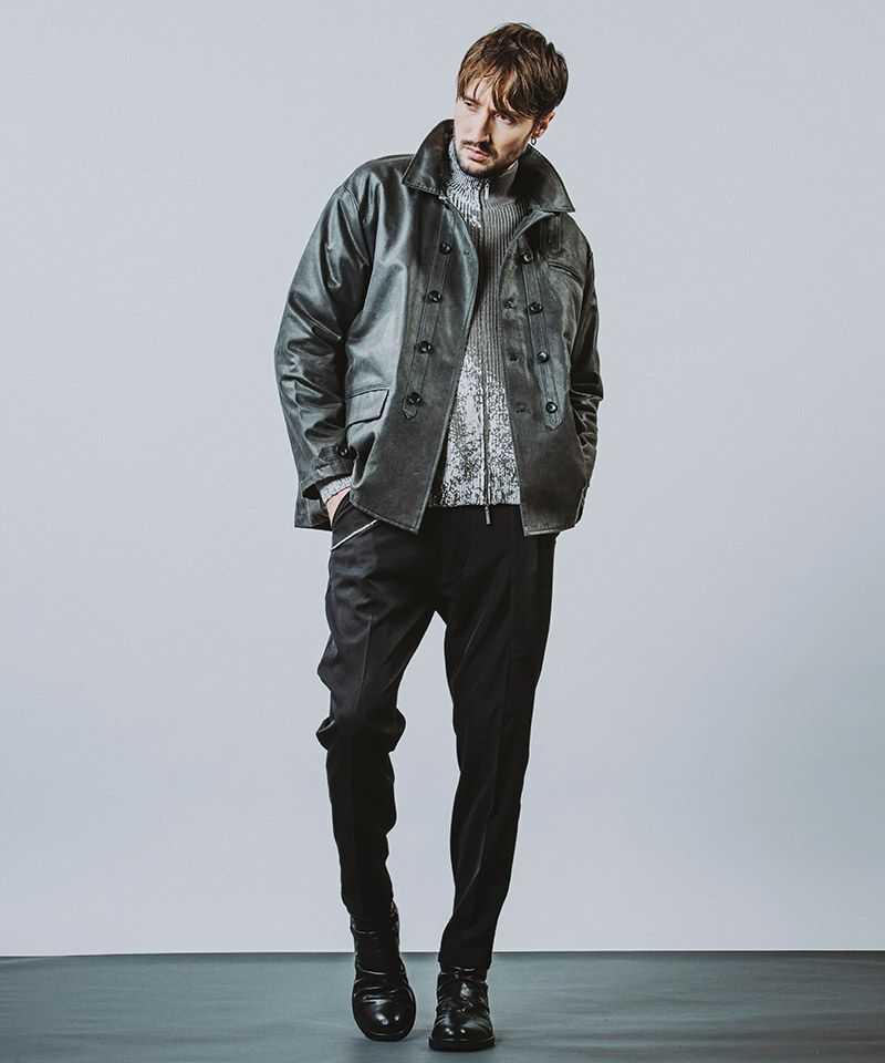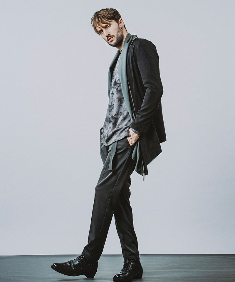 太腿に適度なゆとりを持たせ膝下からテーパードを効かせたシルエット