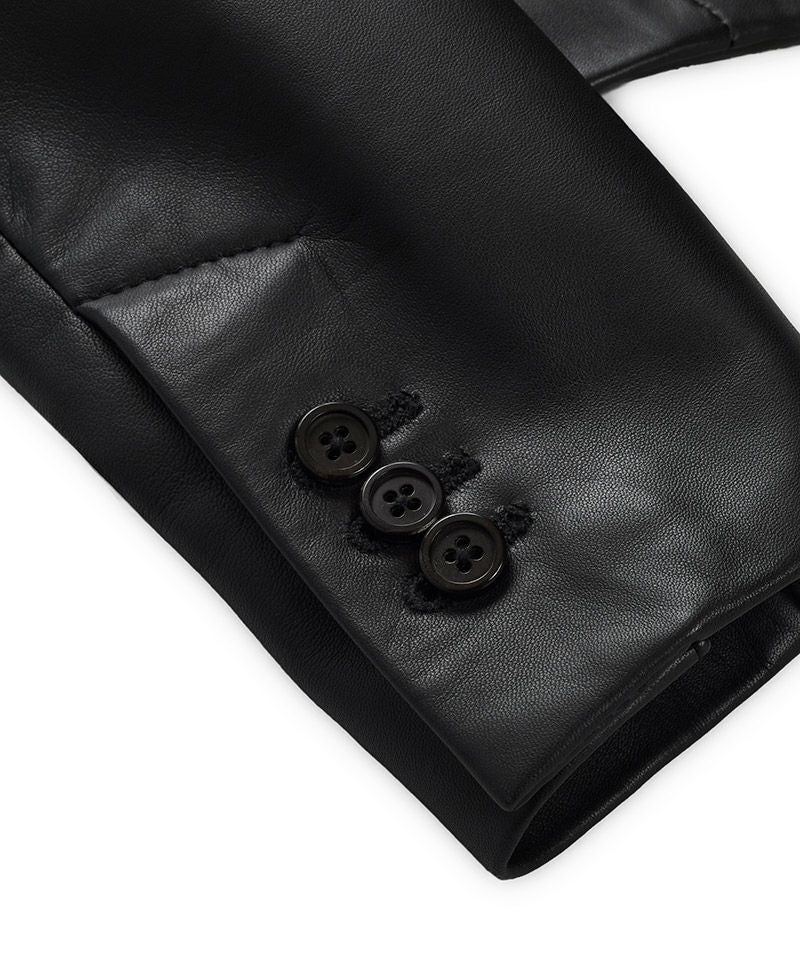生後一年以上の羊の革を0.8mm厚に仕上げクロム鞣しを施したナポレオンジャケット。