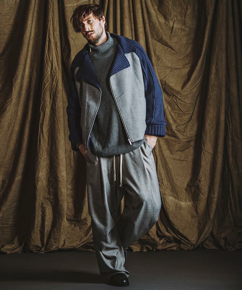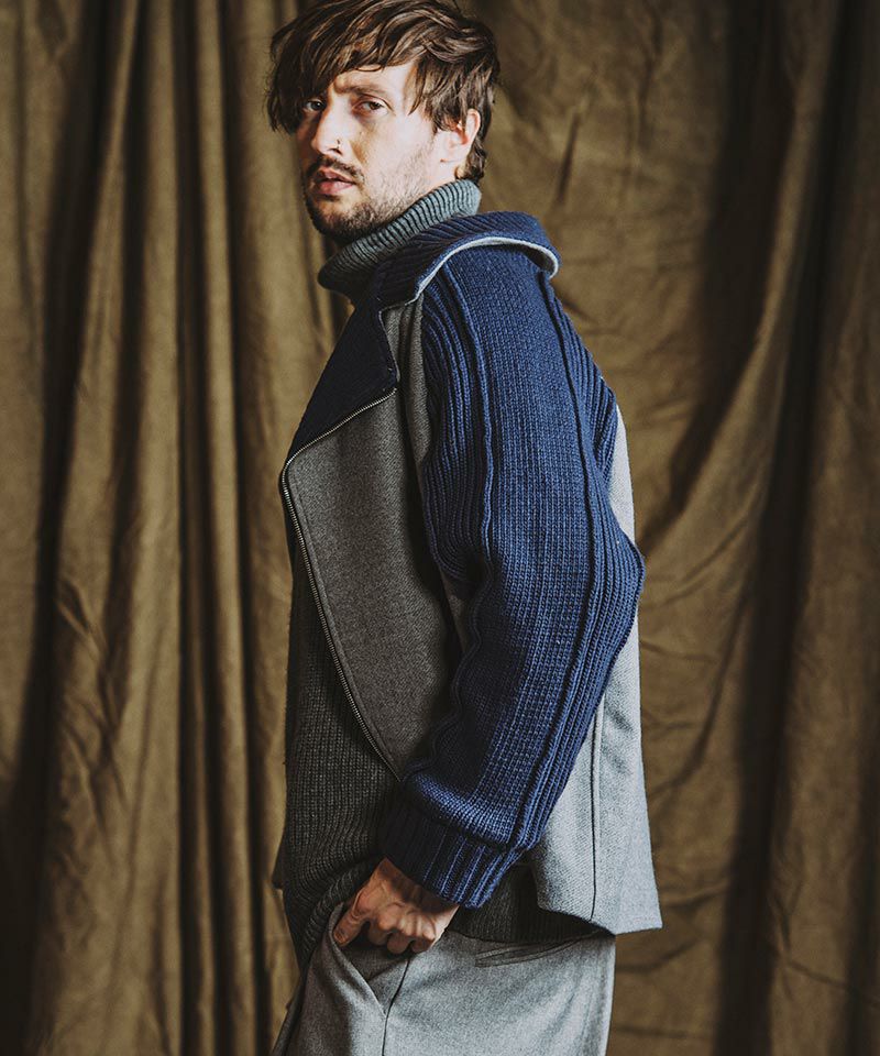 50%OFF【NO ID.(ノーアイディー)】チェンジングニットBIGライダースJKT(855010-883K)