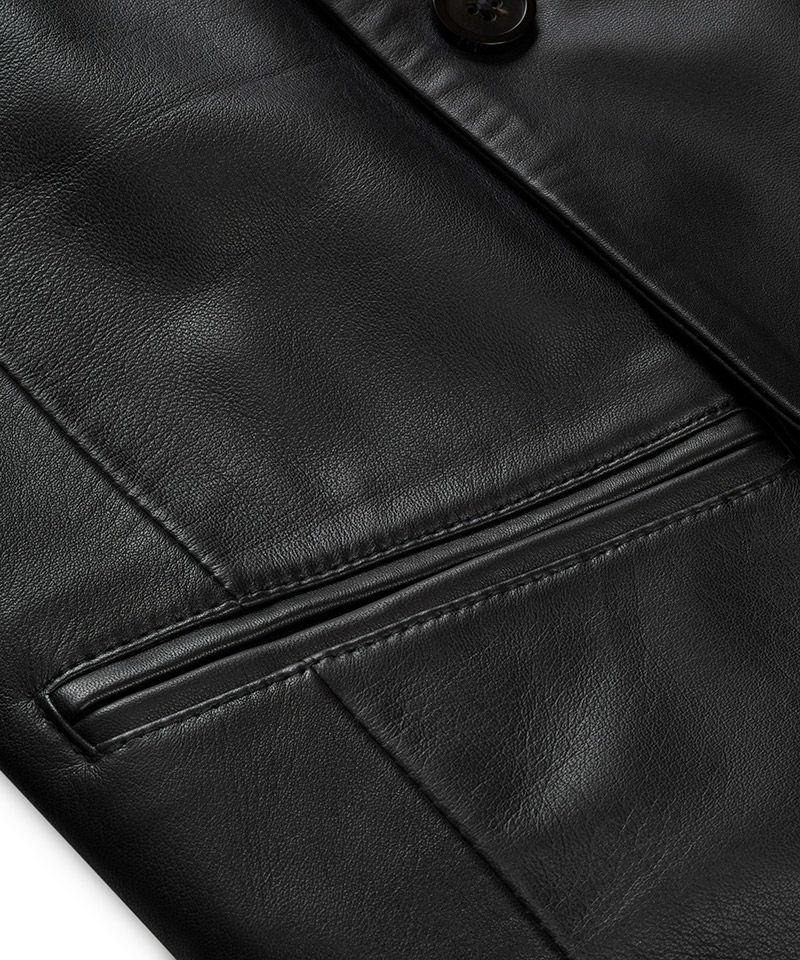 生後一年以上の羊の革を0.8mm厚に仕上げクロム鞣しを施したナポレオンジャケット。