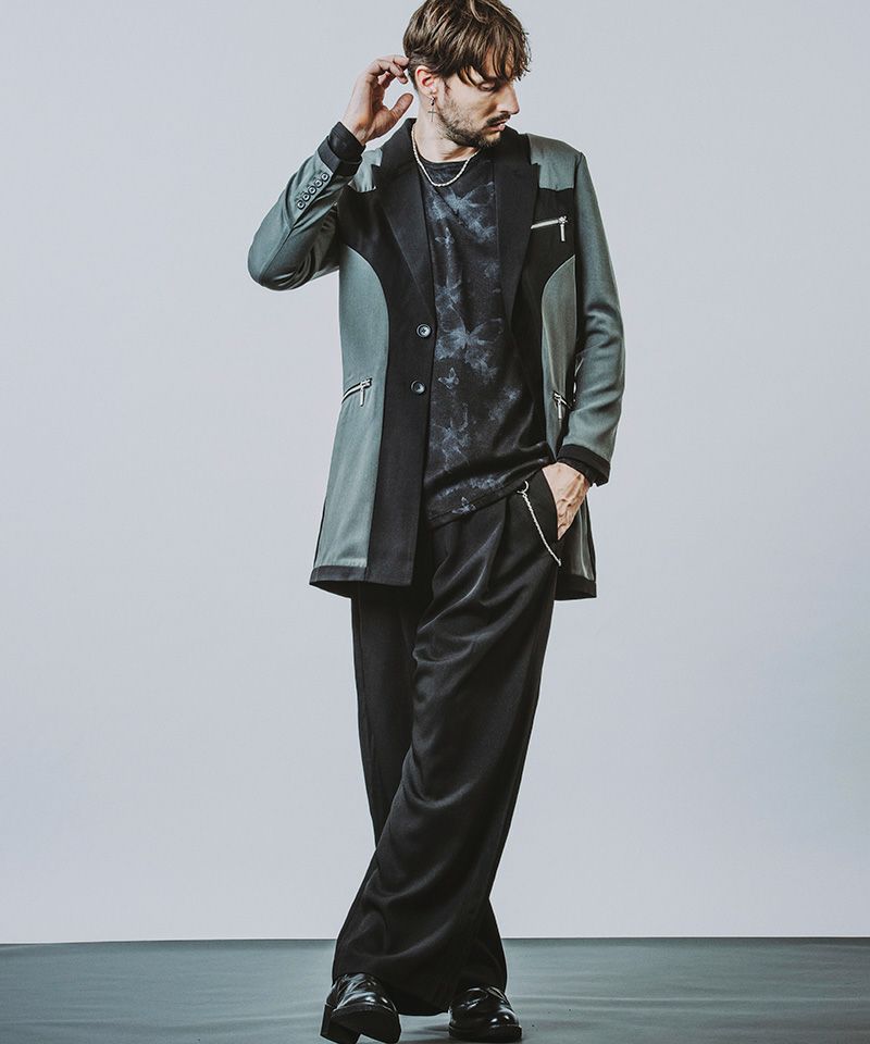 サイドラインワイドトラウザーズとのセットアップ着用が可能