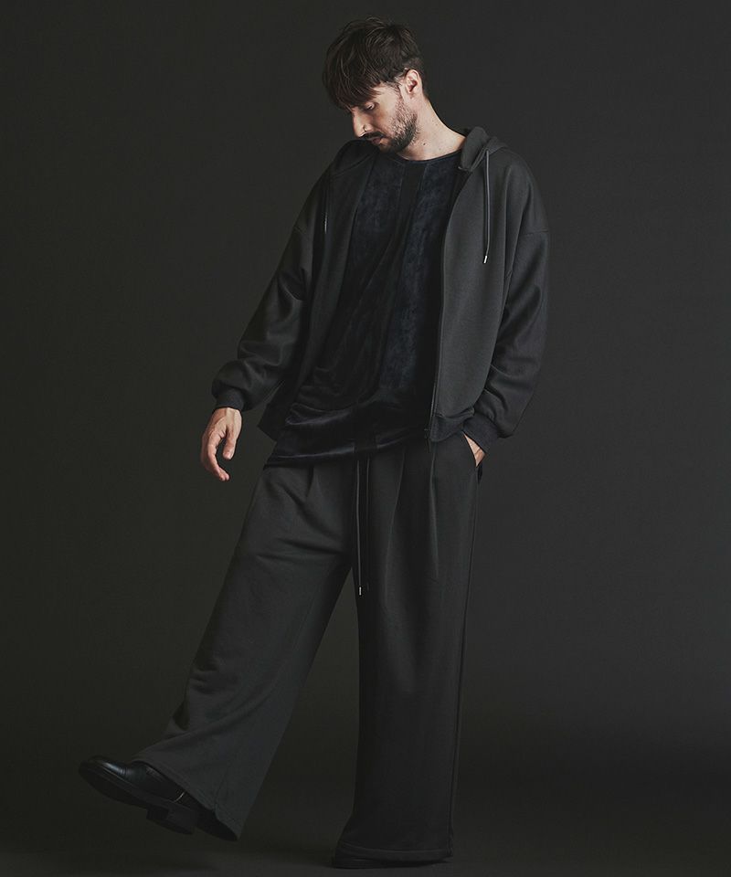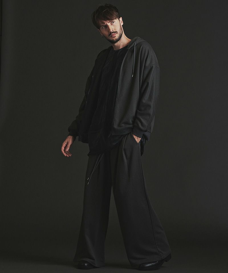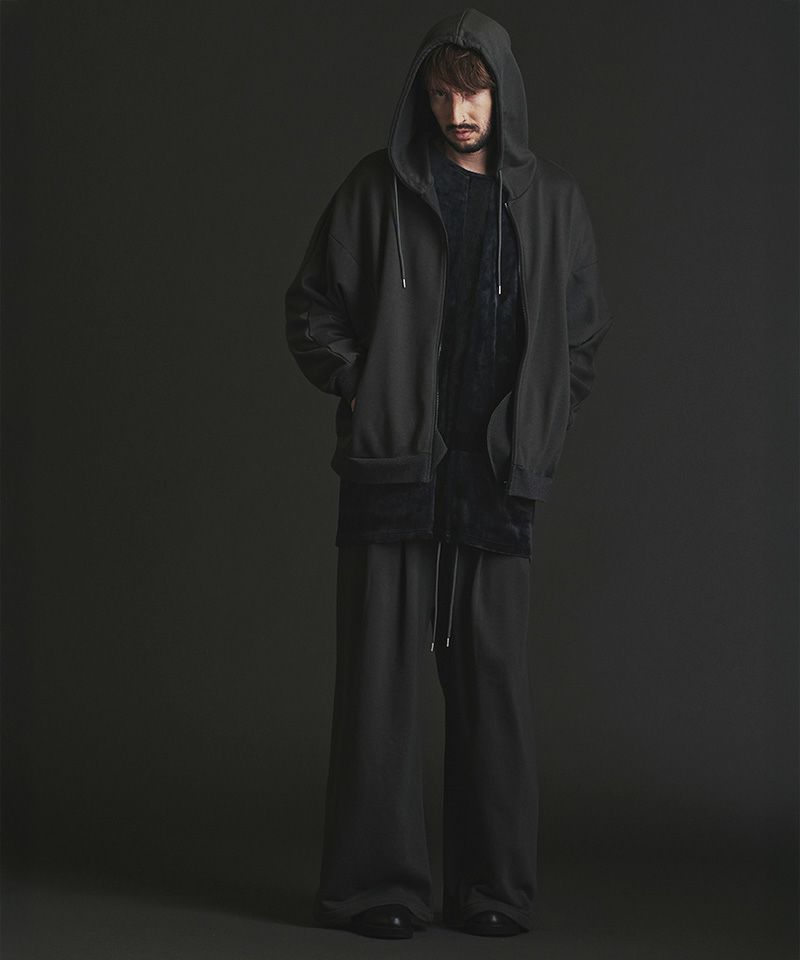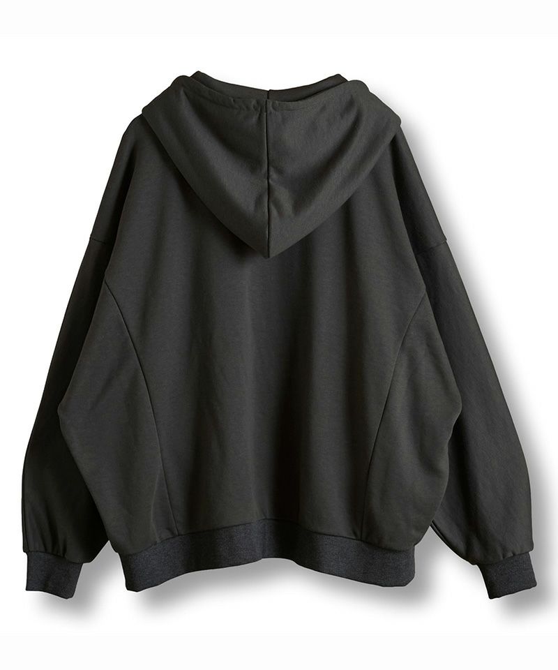 肩線のないドルマンシルエットをベースにオーバーサイズに仕上げたZIPパーカ。