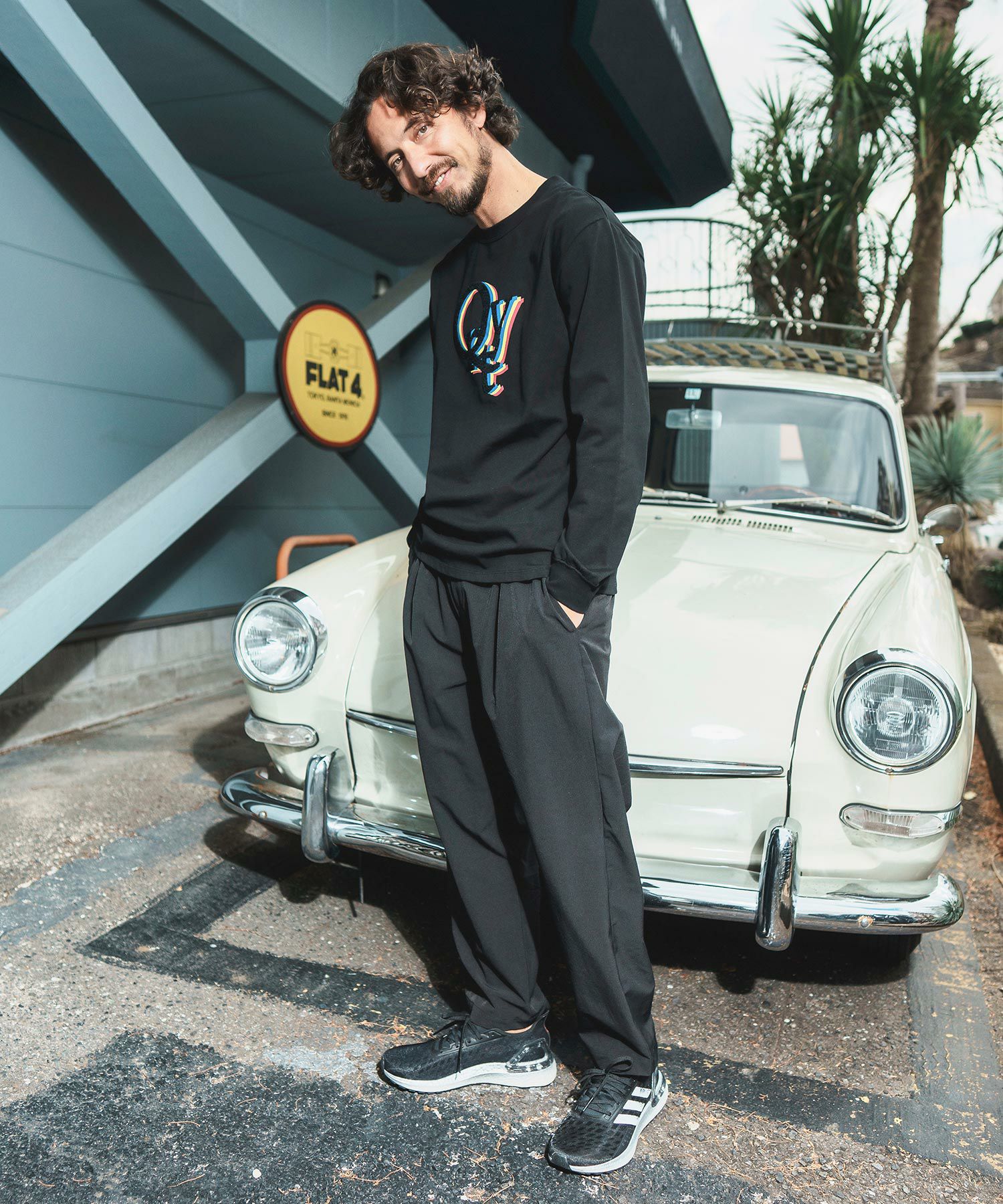 181cmのモデルがLサイズを着用。