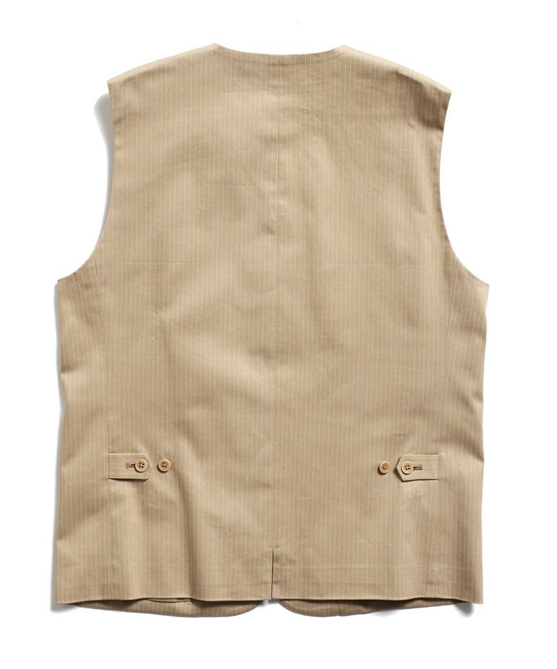 中肉厚のワークストライプを使用したベスト。