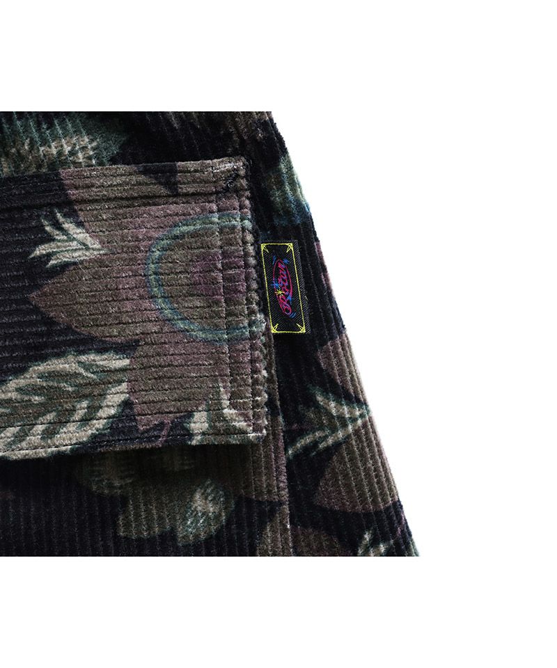 秋冬定番素材のコーデュロイにフラワープリントを施し、ヴィンテージラグのような雰囲気が特徴です。