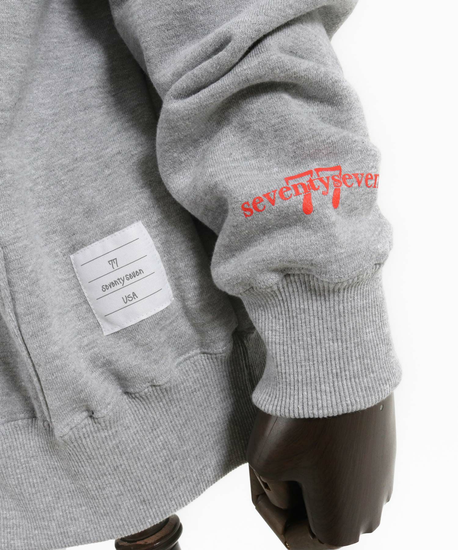 袖口には77ベーシックロゴをシルクプリント。