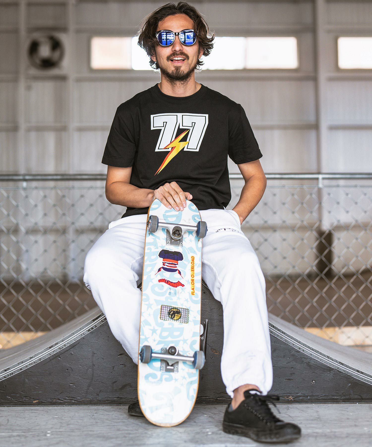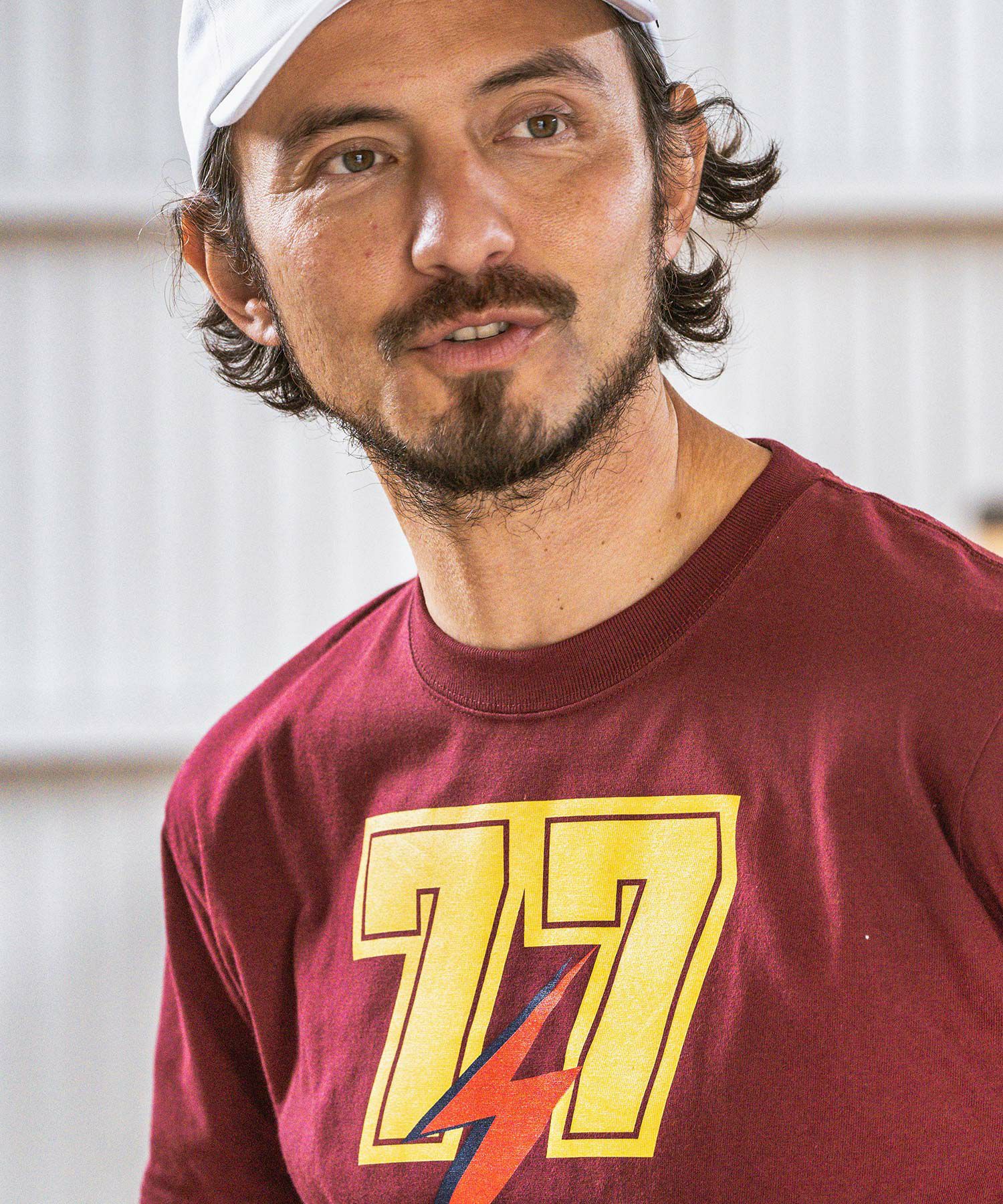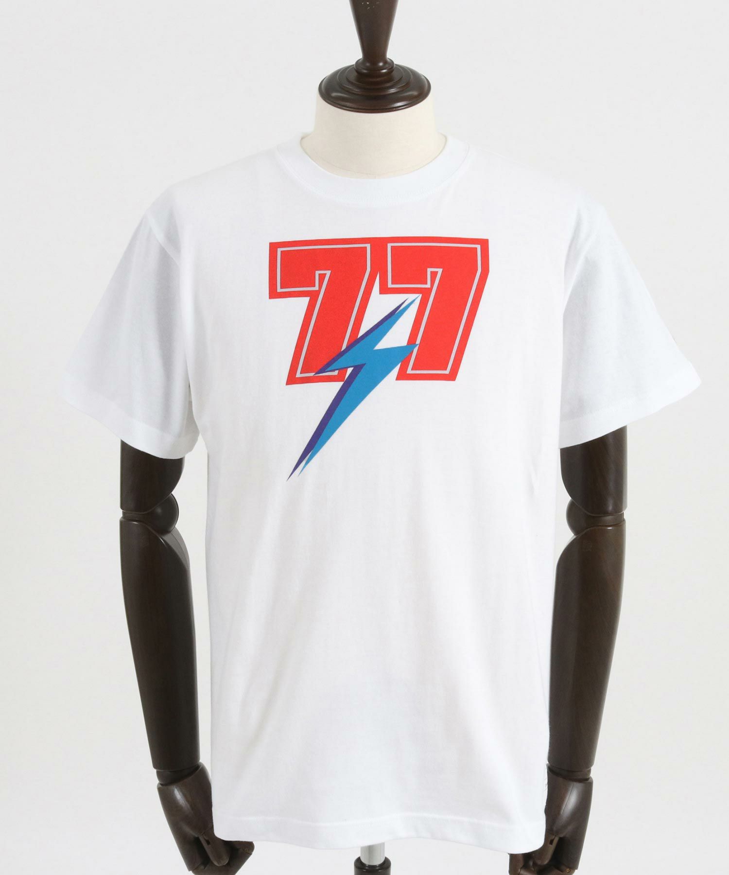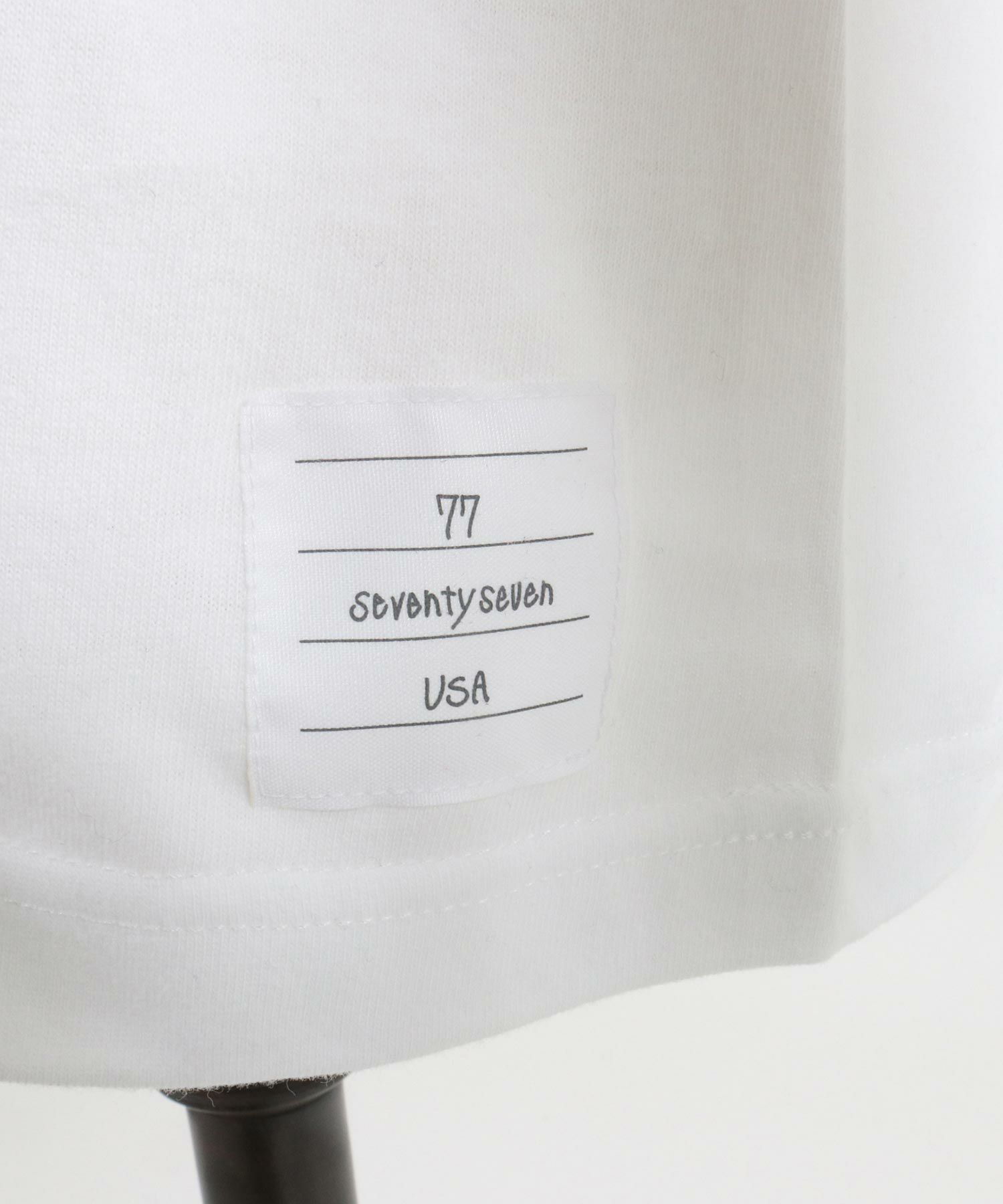 胸には古着でもよく使用されるサンダーと77を掛け合わせたデザインをシルクプリント。