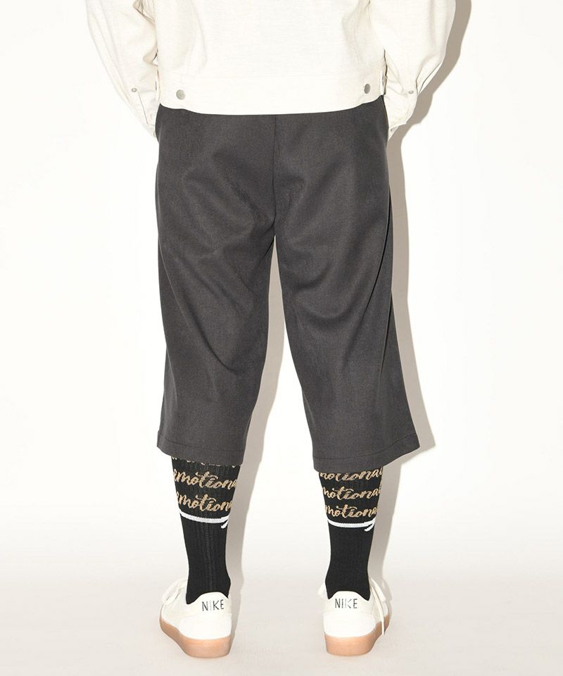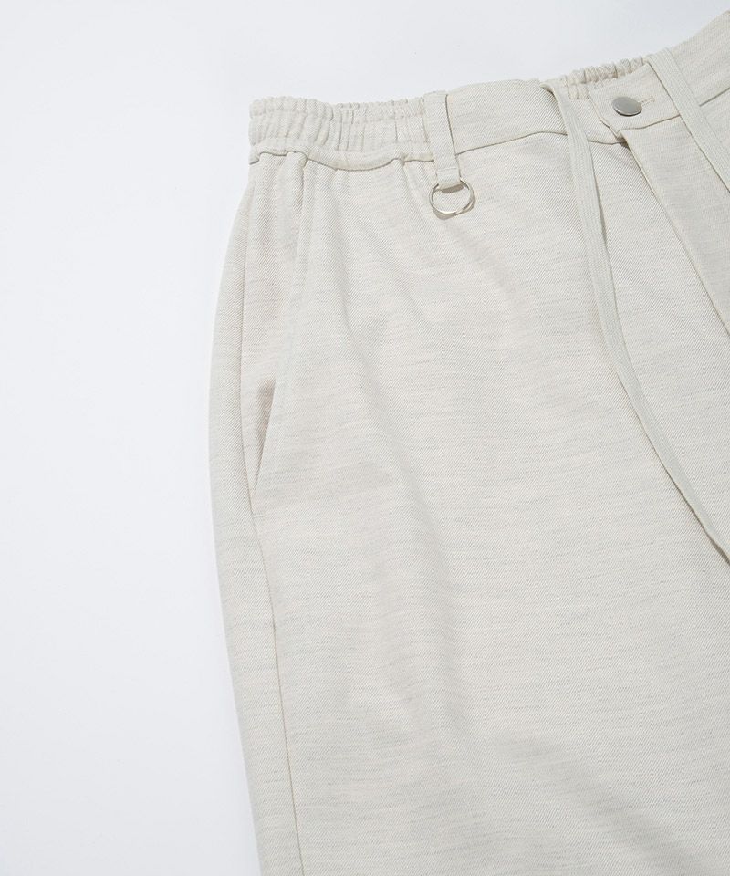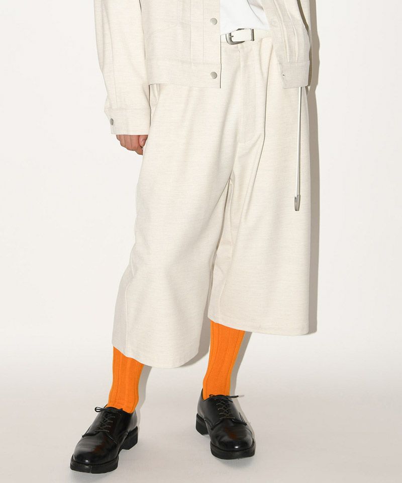 ウール混ながらテロっとした風合いのカットソーライクな中厚手TR生地を使用した、着こなしの幅が広がるクロップド丈のボトムス。