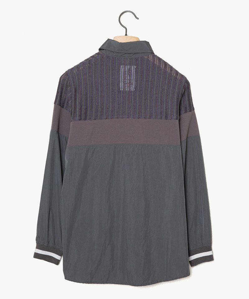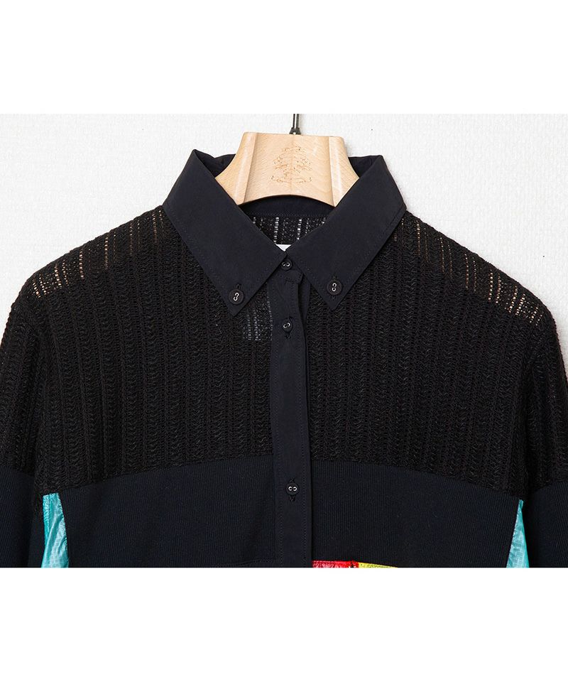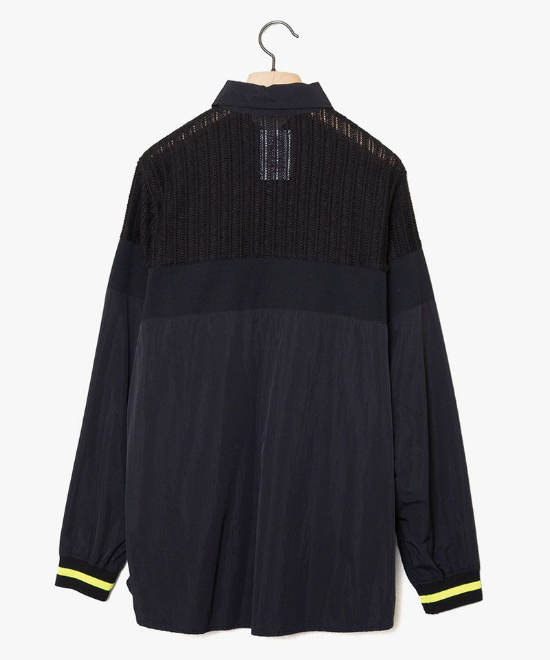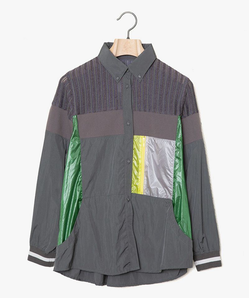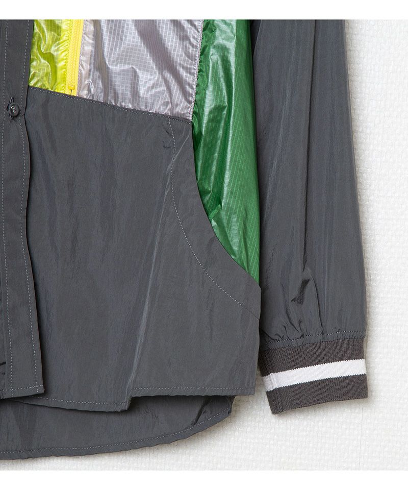 ボタンダウンシャツにスポーティな要素と大胆な配色を施したシャツジャケット。