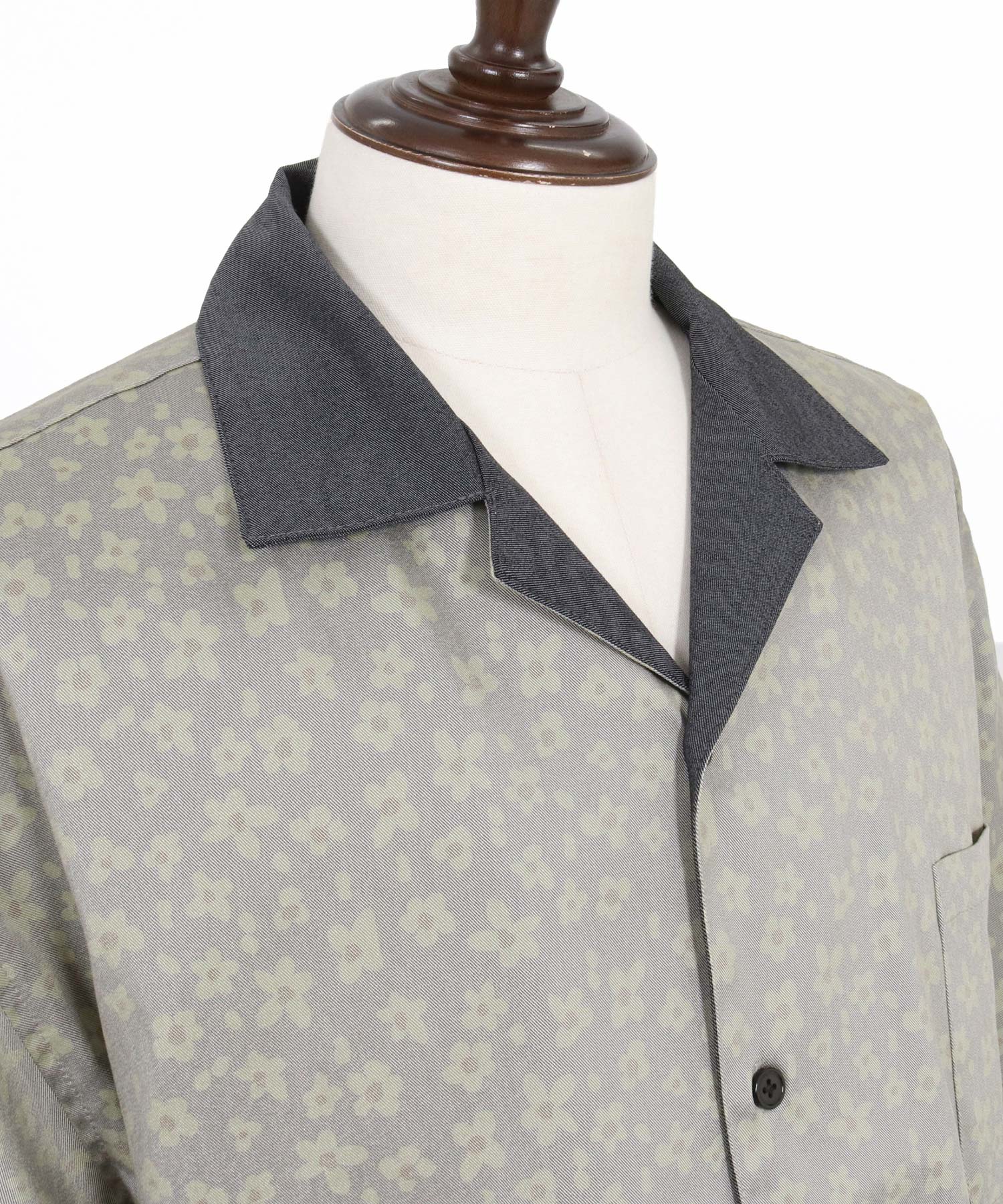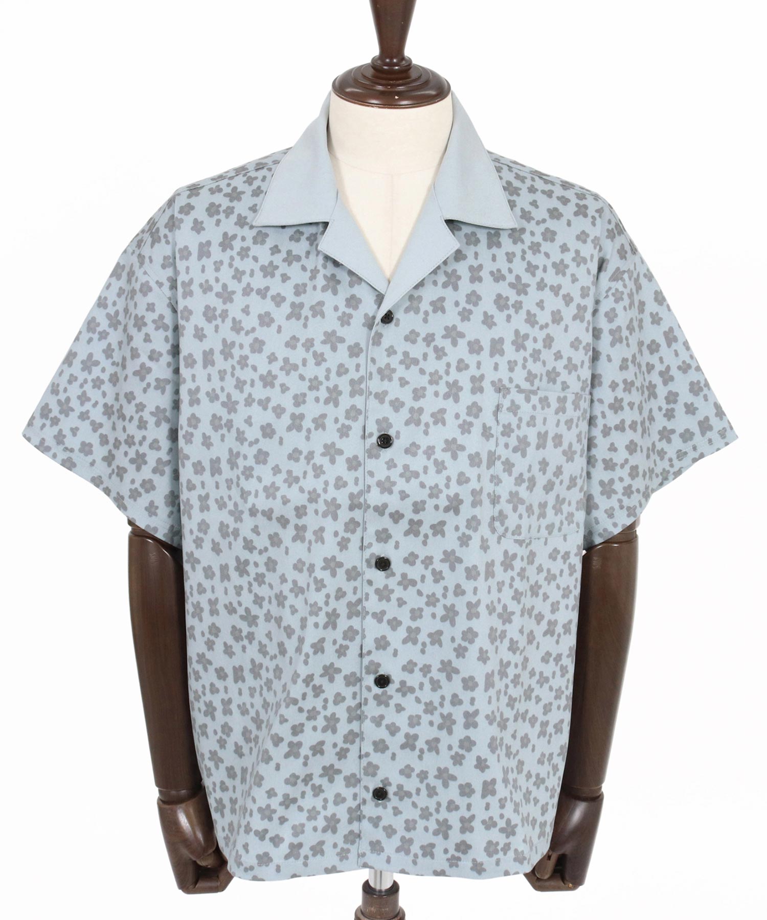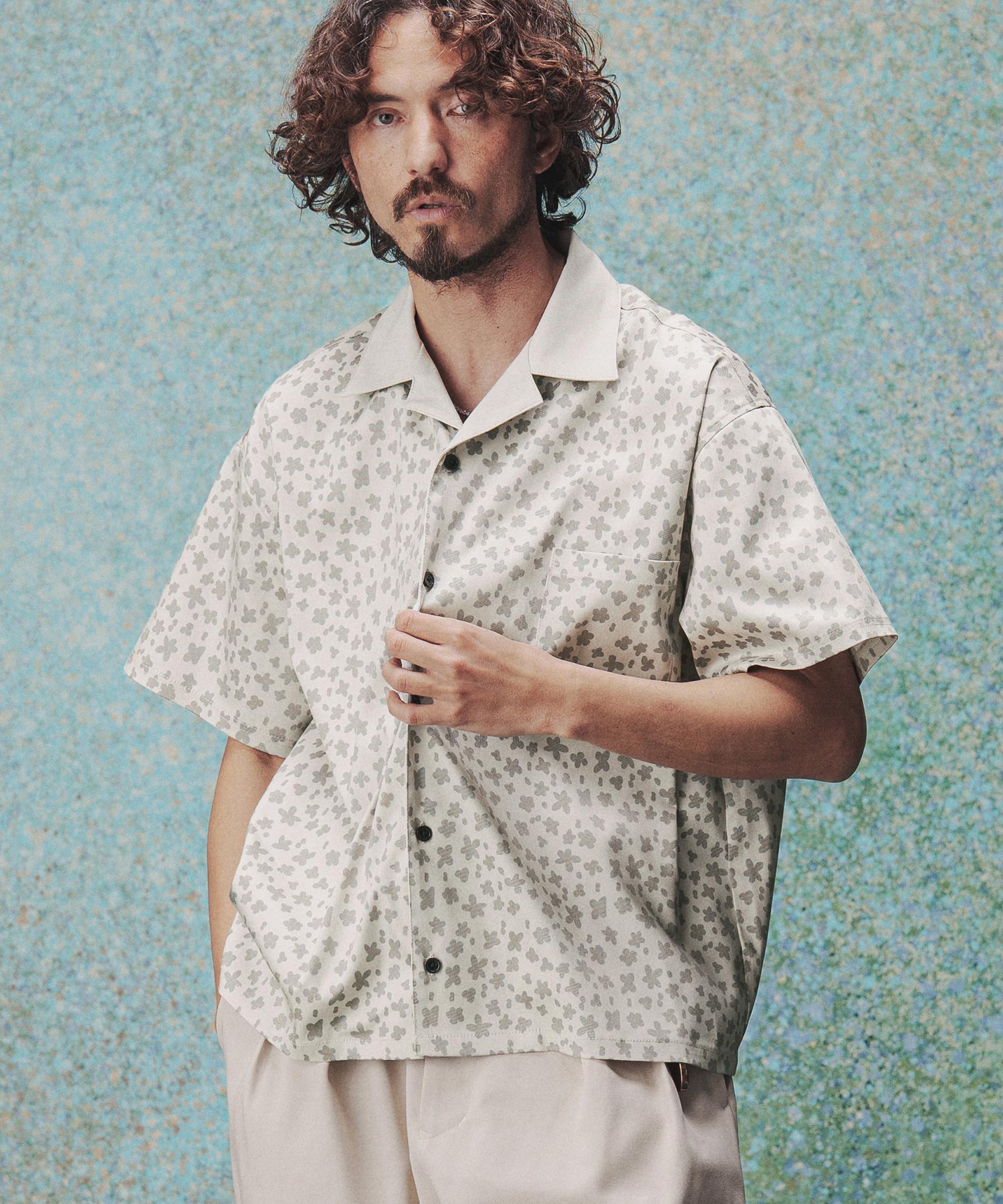 レオパード柄と花柄を掛け合わせたオープンカラーシャツ。
