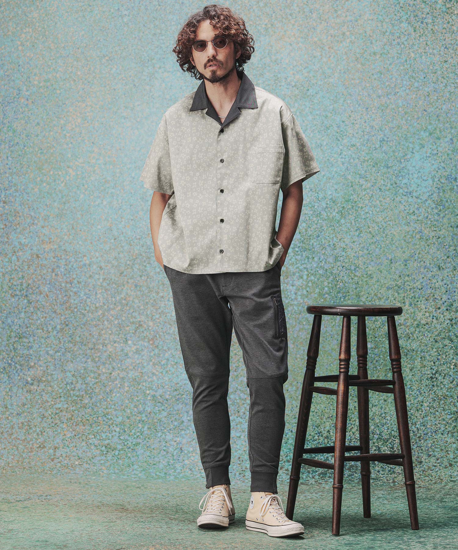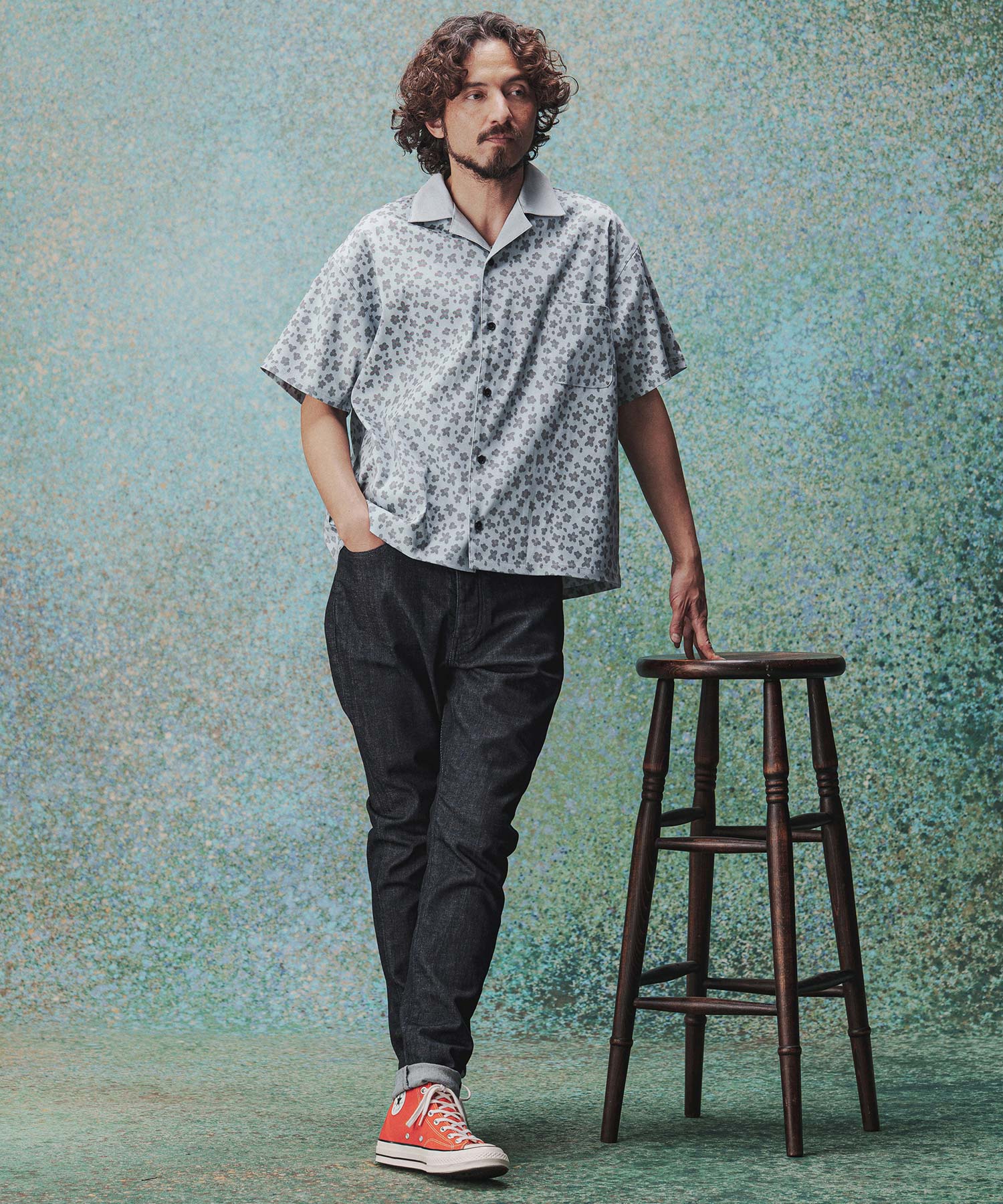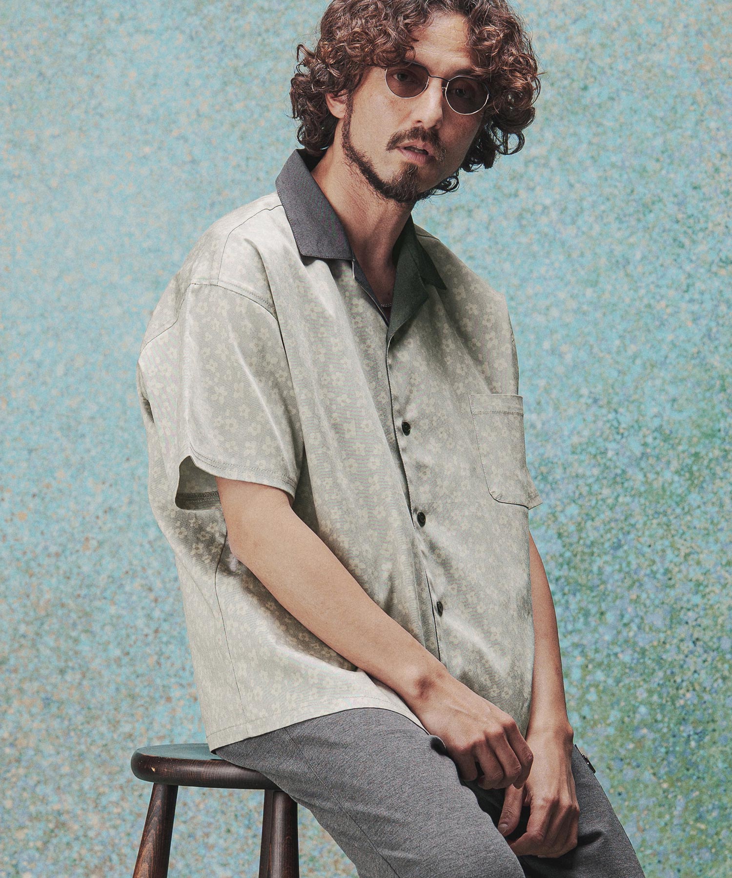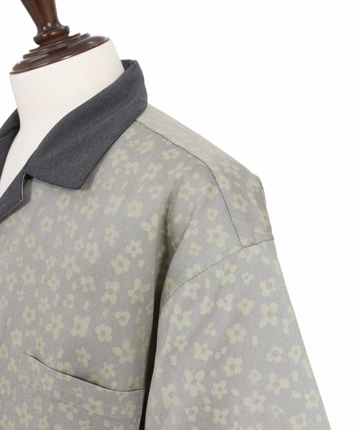 レオパード柄と花柄を掛け合わせたオープンカラーシャツ。