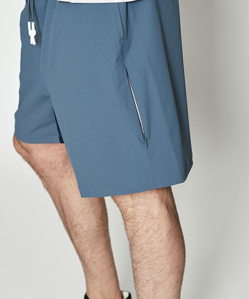 脇のコンシールファスナーを開く事で、通気性を向上させるベンチレーション機能を持たせたイージーショーツ。