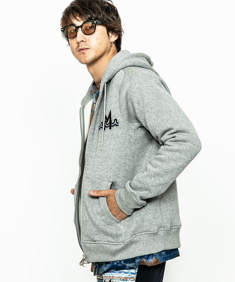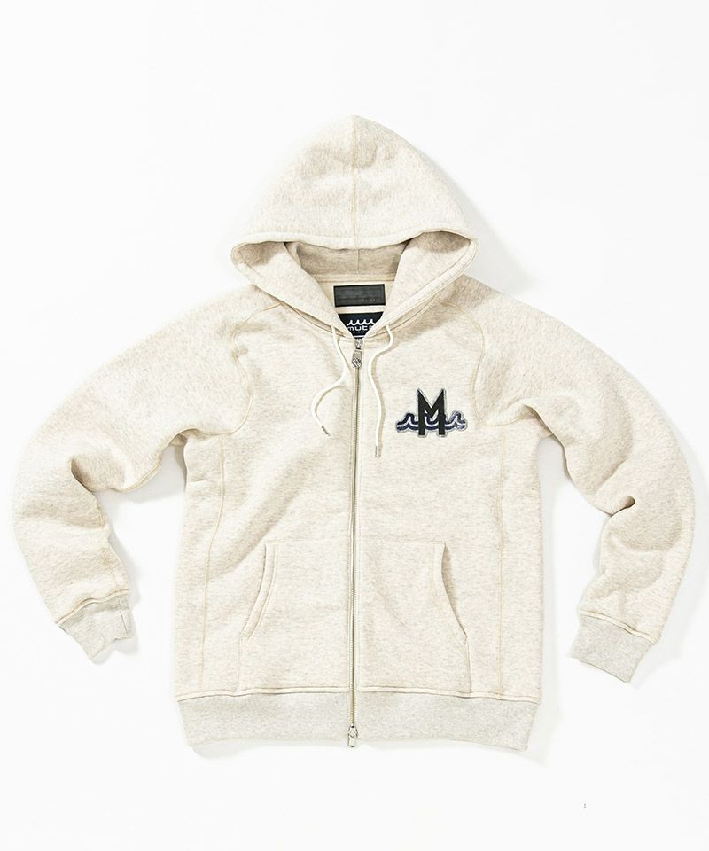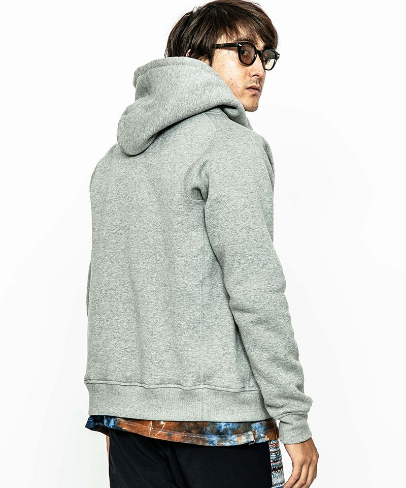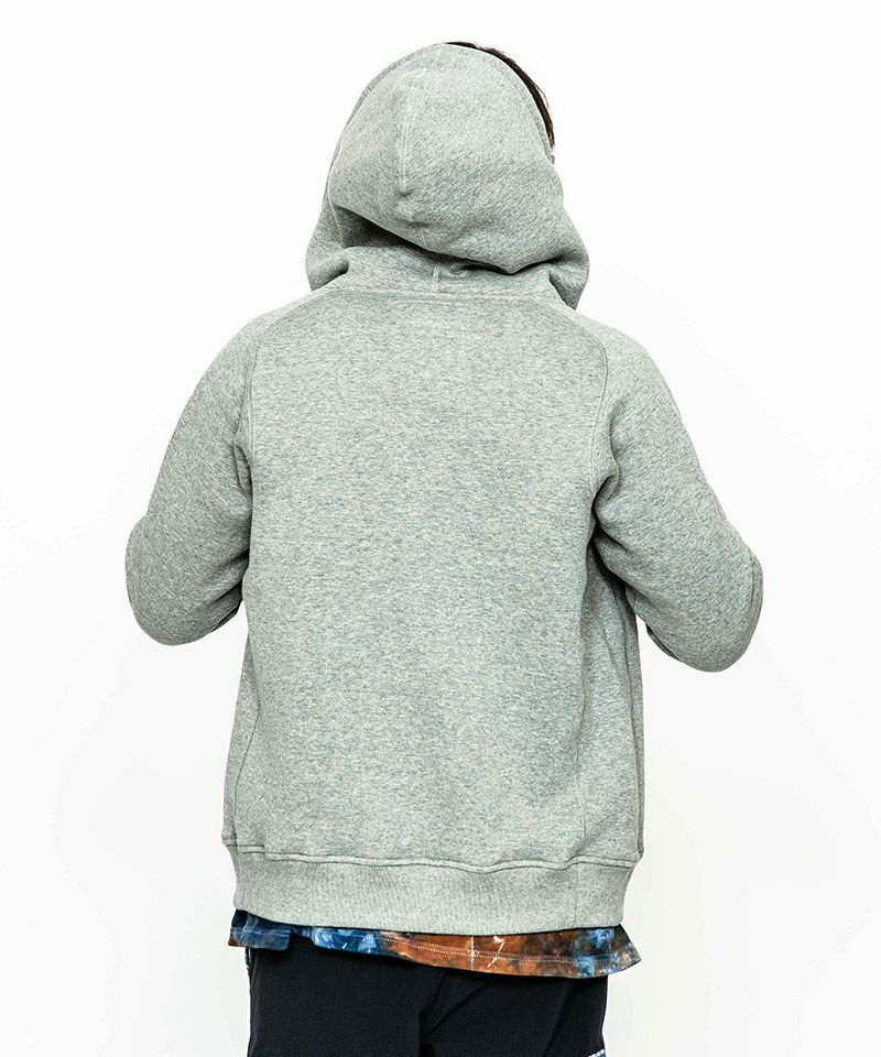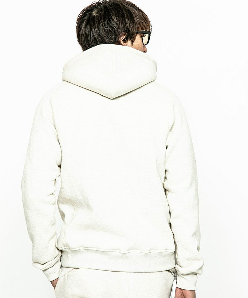 度詰裏毛起毛を使用したフルジップフーディー。