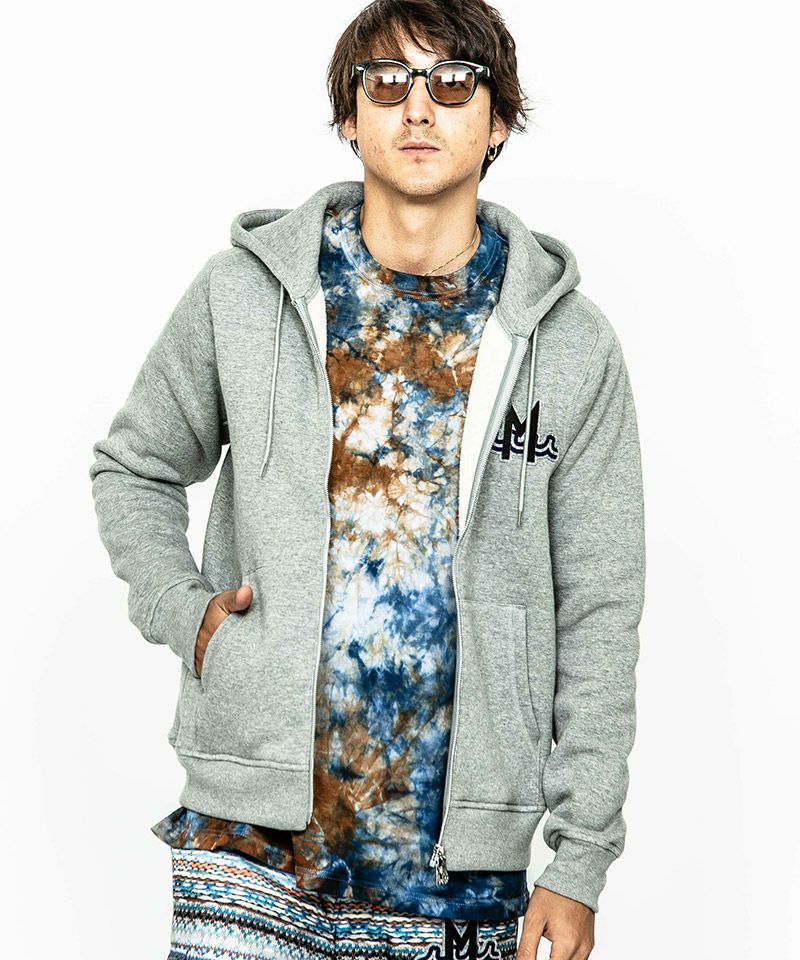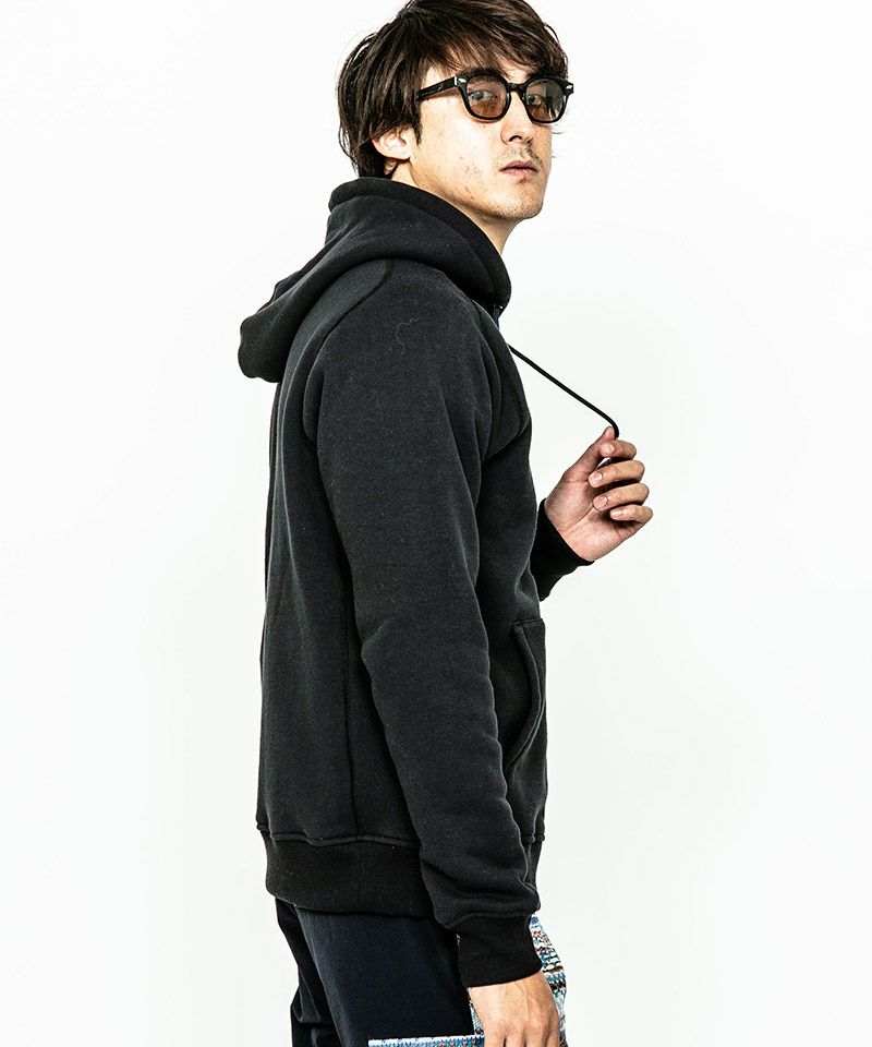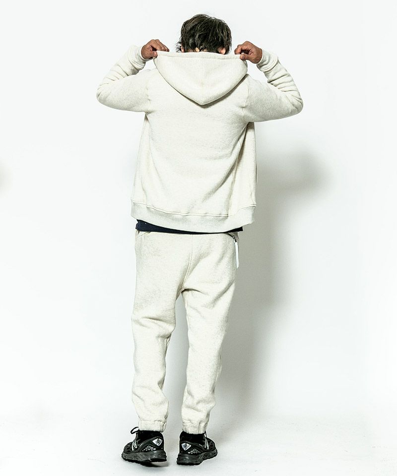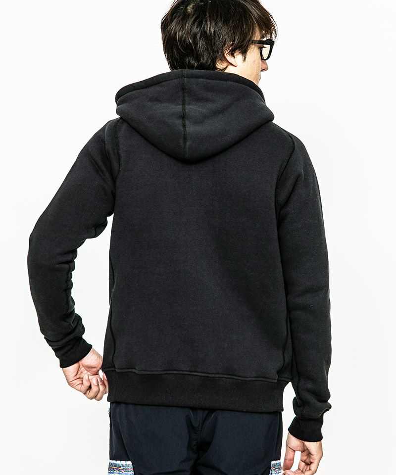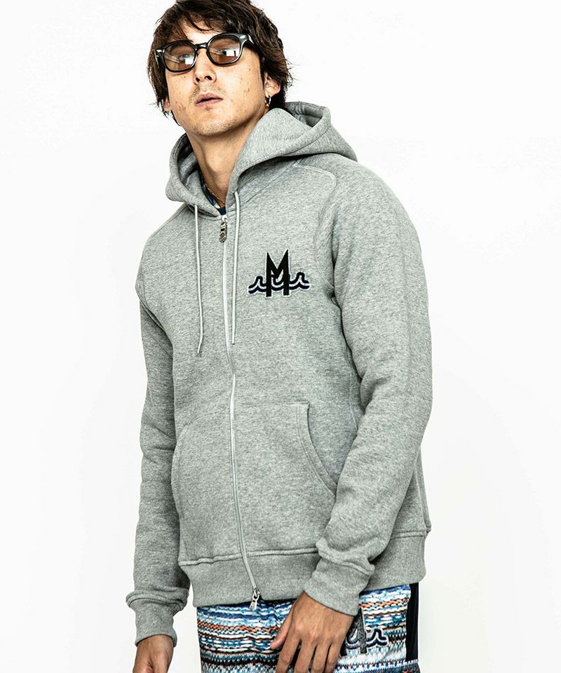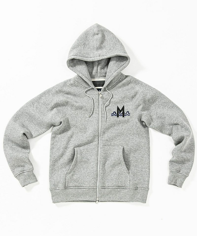 度詰裏毛起毛を使用したフルジップフーディー。
