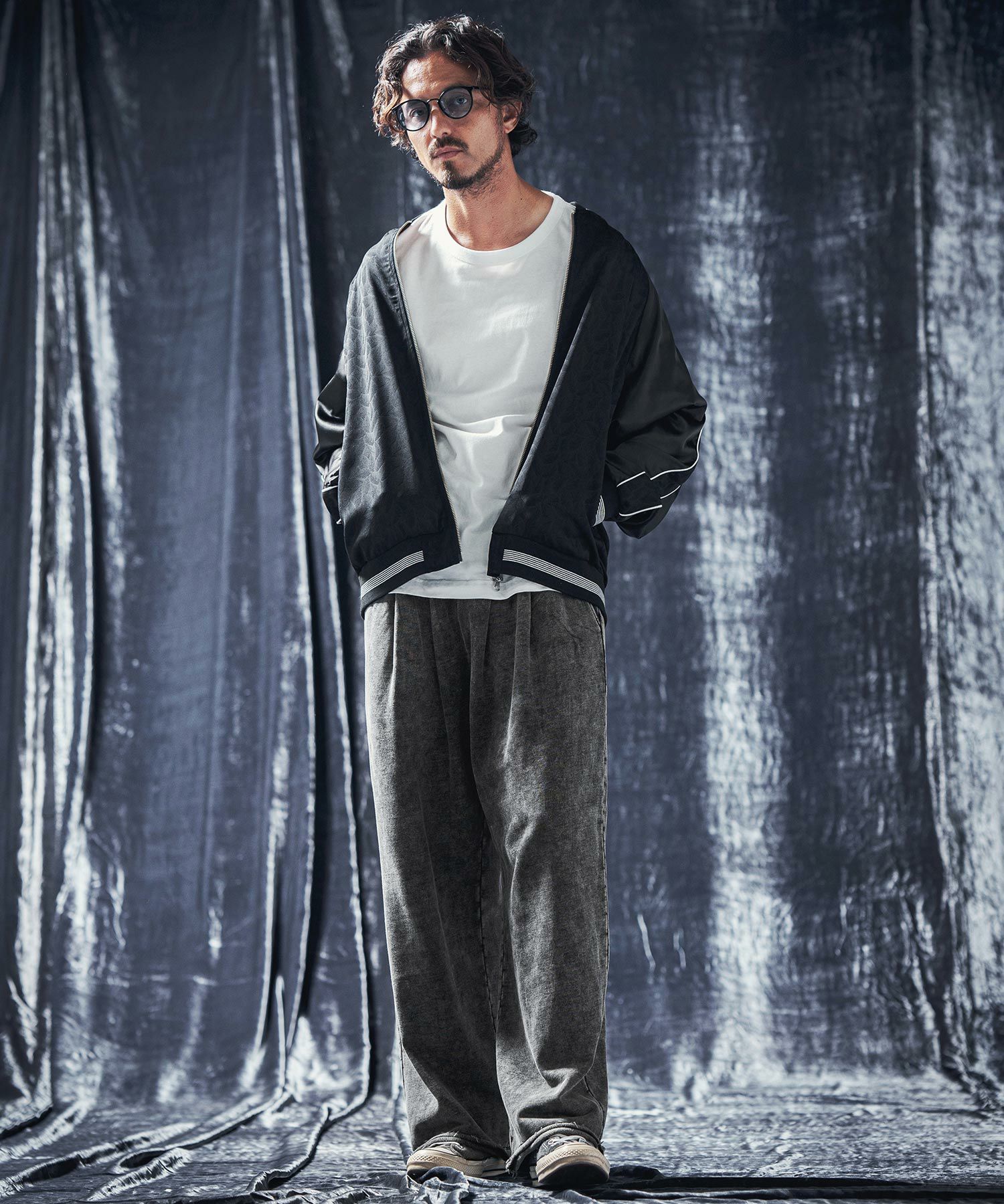 ワタリからヒップ周りにゆとりをもたせたワイドストレートシルエット。