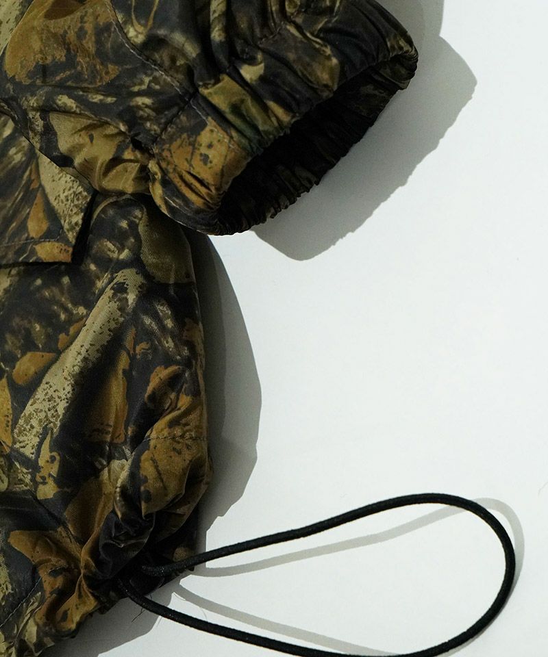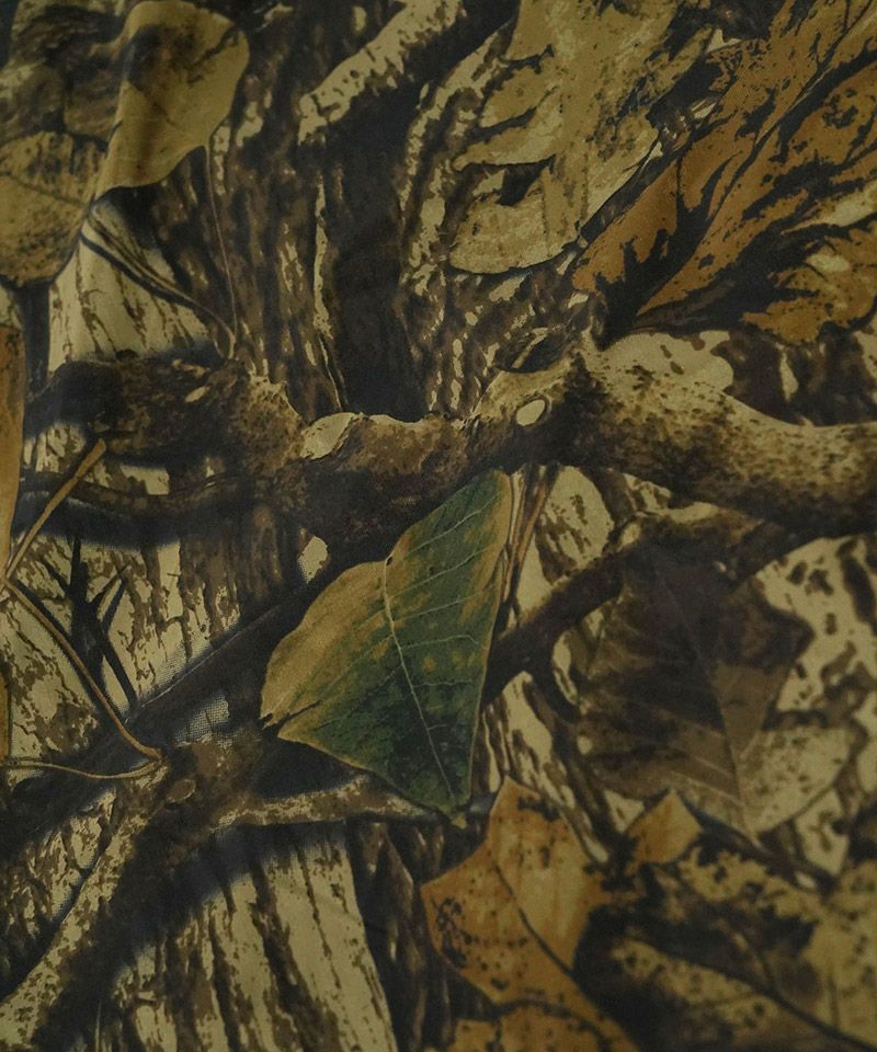 ミリタリー調のリアルツリーカモを高密度なナイロンタフタにプリントした素材を使用しています。