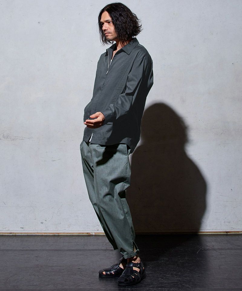 足首丈で、太めのワタリから裾にかけてテーパードするシルエットが特徴です。