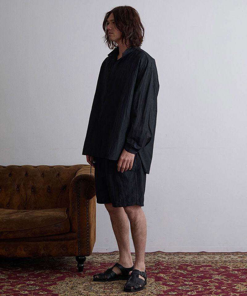 リネン特有の上品な光沢感と、ワッシャー加工による味のあるシワ感が絶妙なバランスを生み出しています。