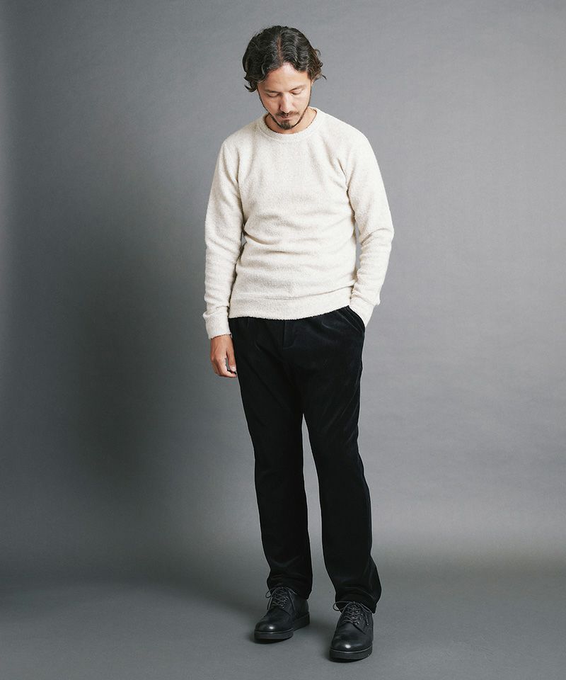 ウールブレンド糸を使用し、暖かみのあるパイルを使用。