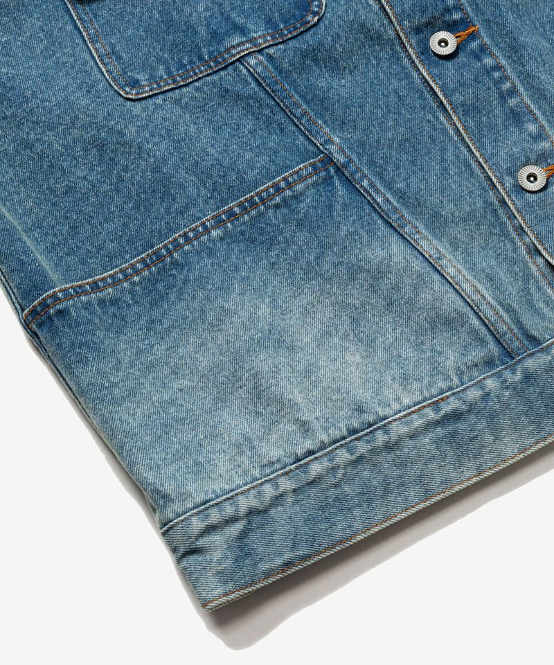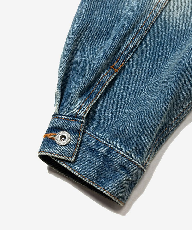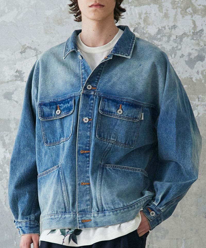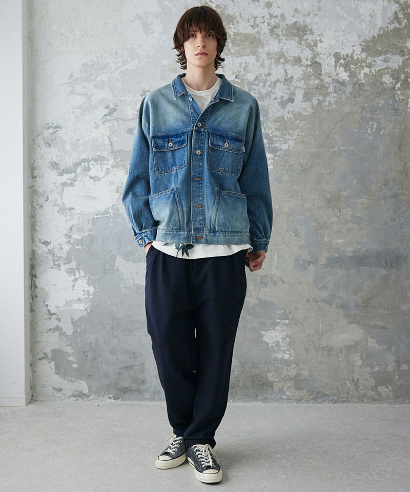 クラシックなデニムジャケットにワークウェアのデザインエッセンスを加え、ヴィンテージ感のあるデニム素材で仕上げたジャケットです。