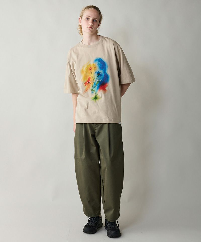鮮やかな花々と大胆な色彩のグラデーションをインクジェットプリントで表現したTシャツです。