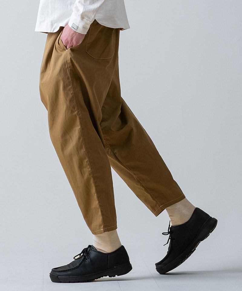 シルエットは、股上と太ももにゆとりを持たせつつ、裾に向かってテーパードを効かせたすっきり見えるラインです。