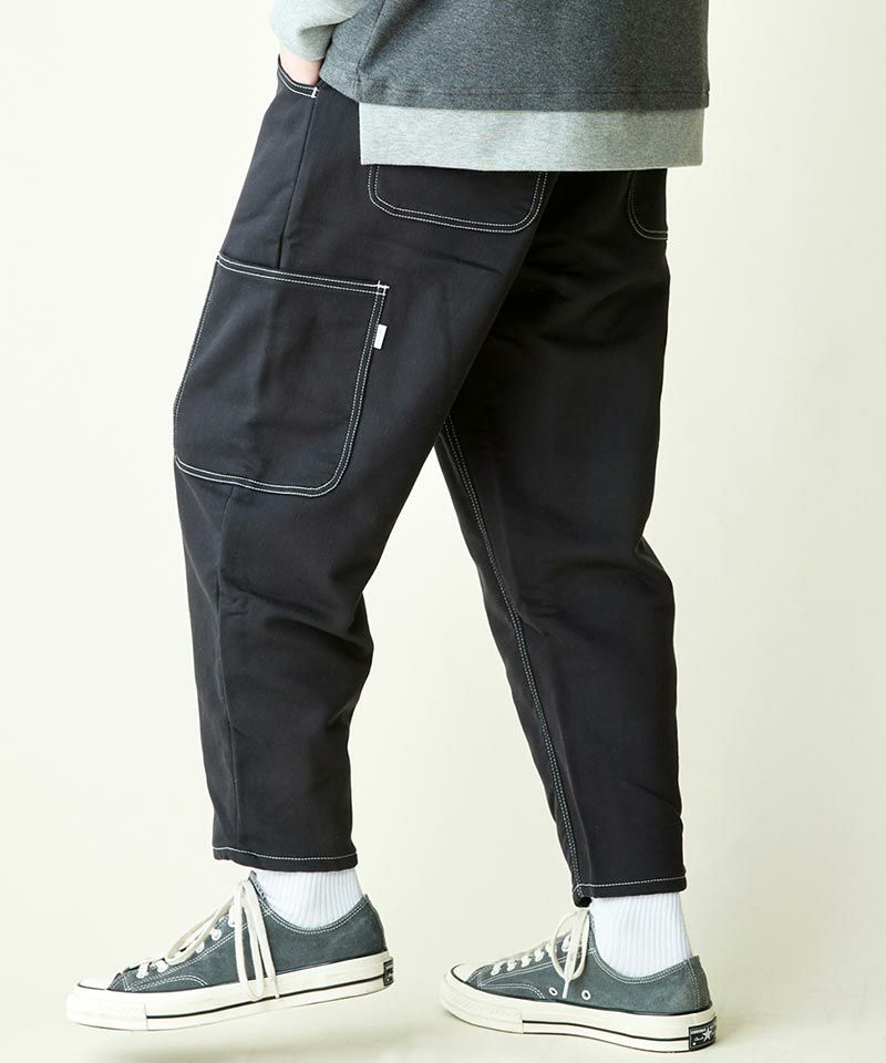 ワイドパンツのボリューム感とテーパードシルエットを組み合わせることで全体としてスッキリとした印象を与えてくれるレアセルオリジナルパターンのペインターパンツです。