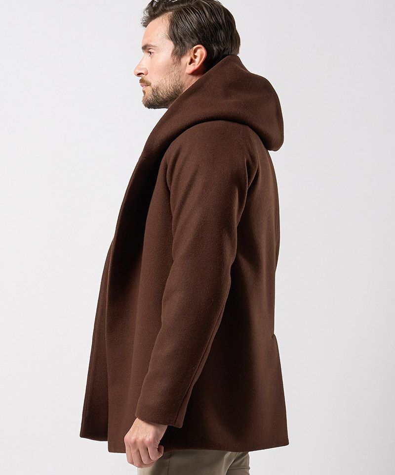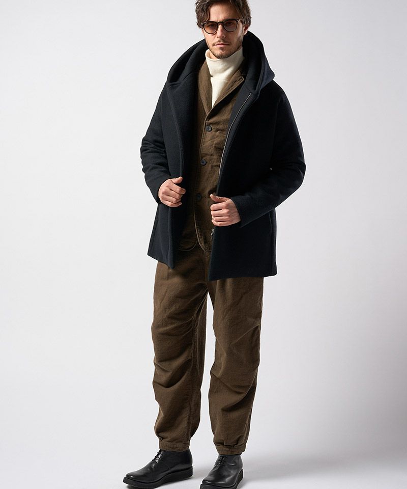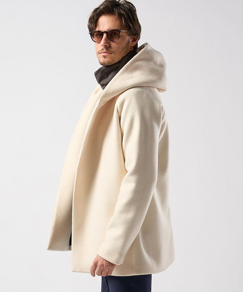 ・フードのボリューム感、体を包み込むようなラップデザインを特徴とする、wjkを代表する秋冬定番フーデッドコートをアップデート。