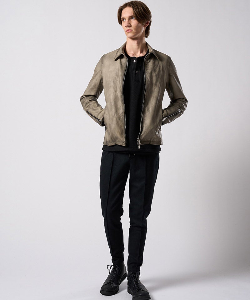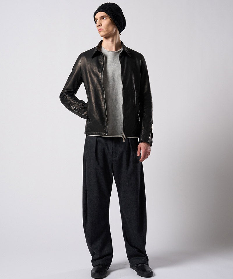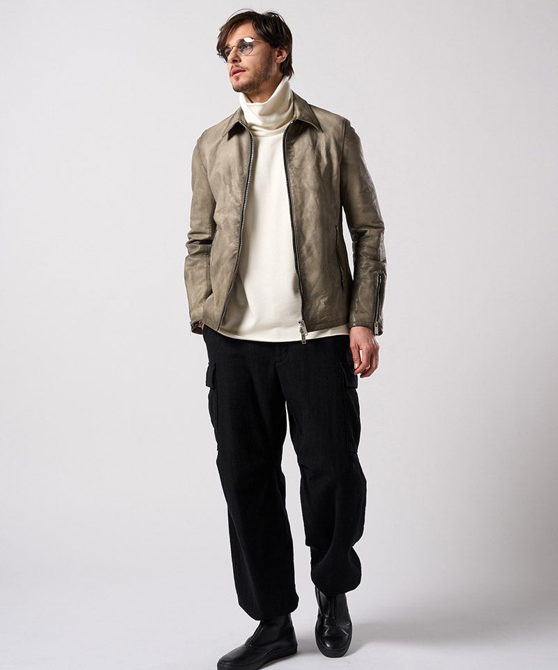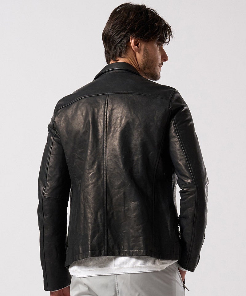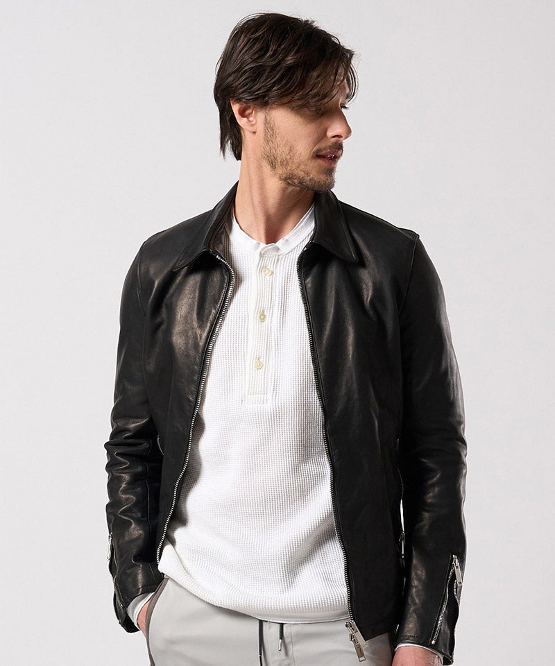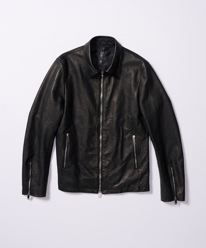 素材の質を真正面から味わうための、完成度の高いミニマルライダースです。