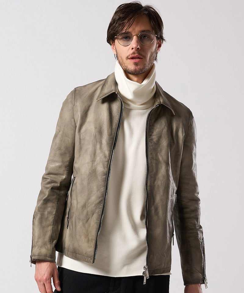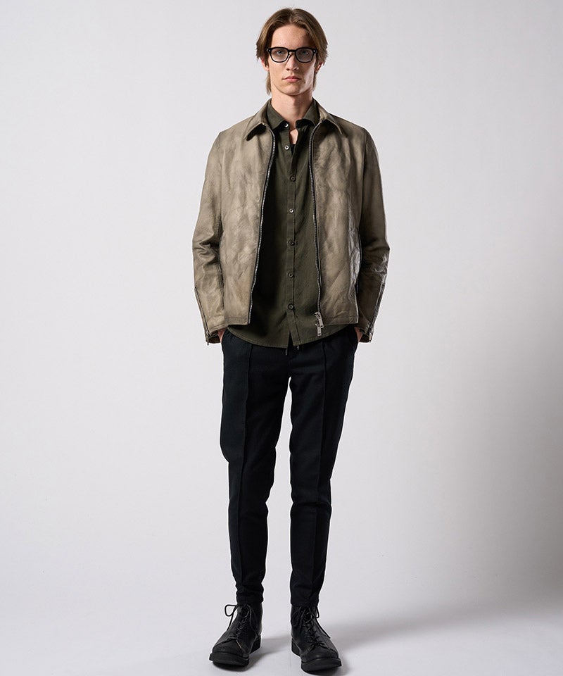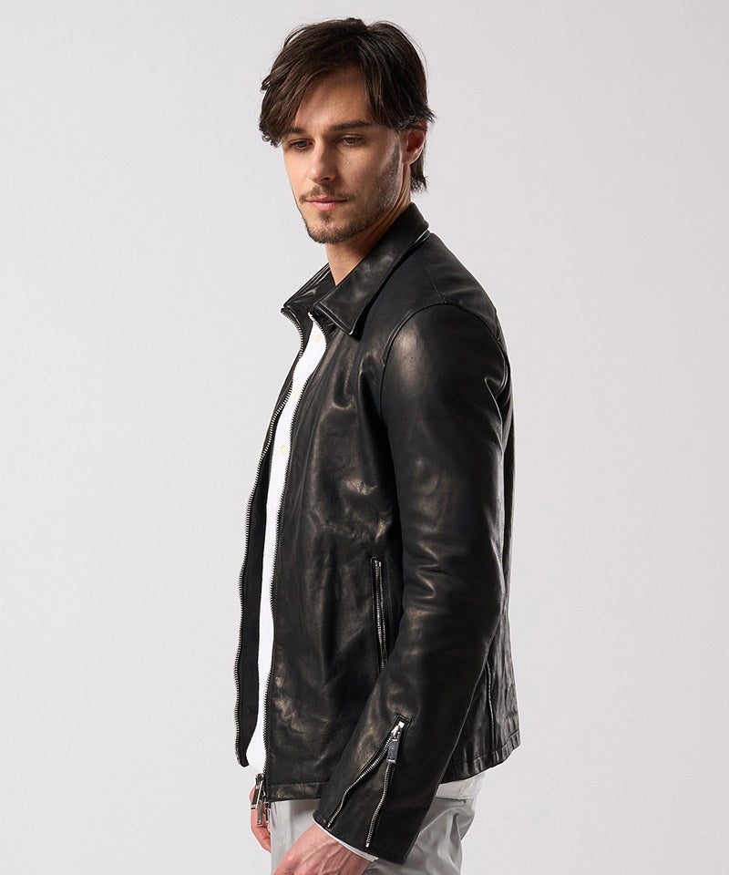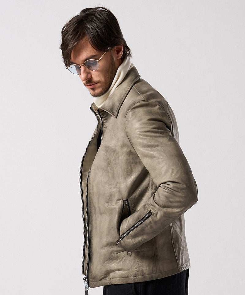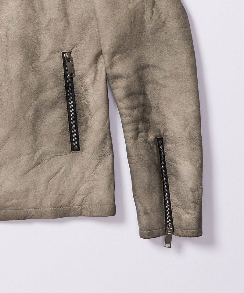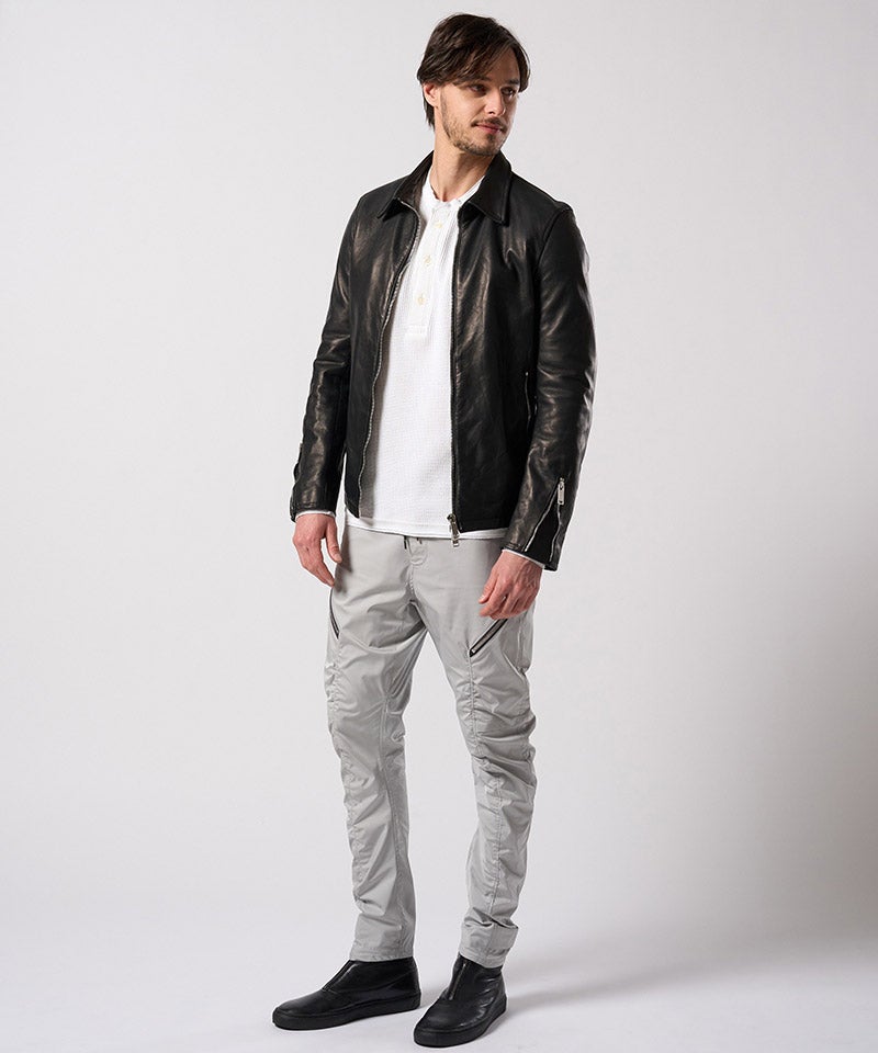 素材の質を真正面から味わうための、完成度の高いミニマルライダースです。