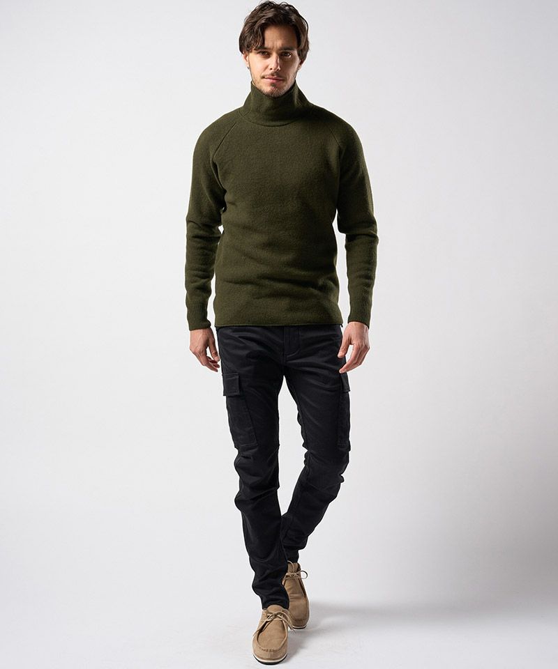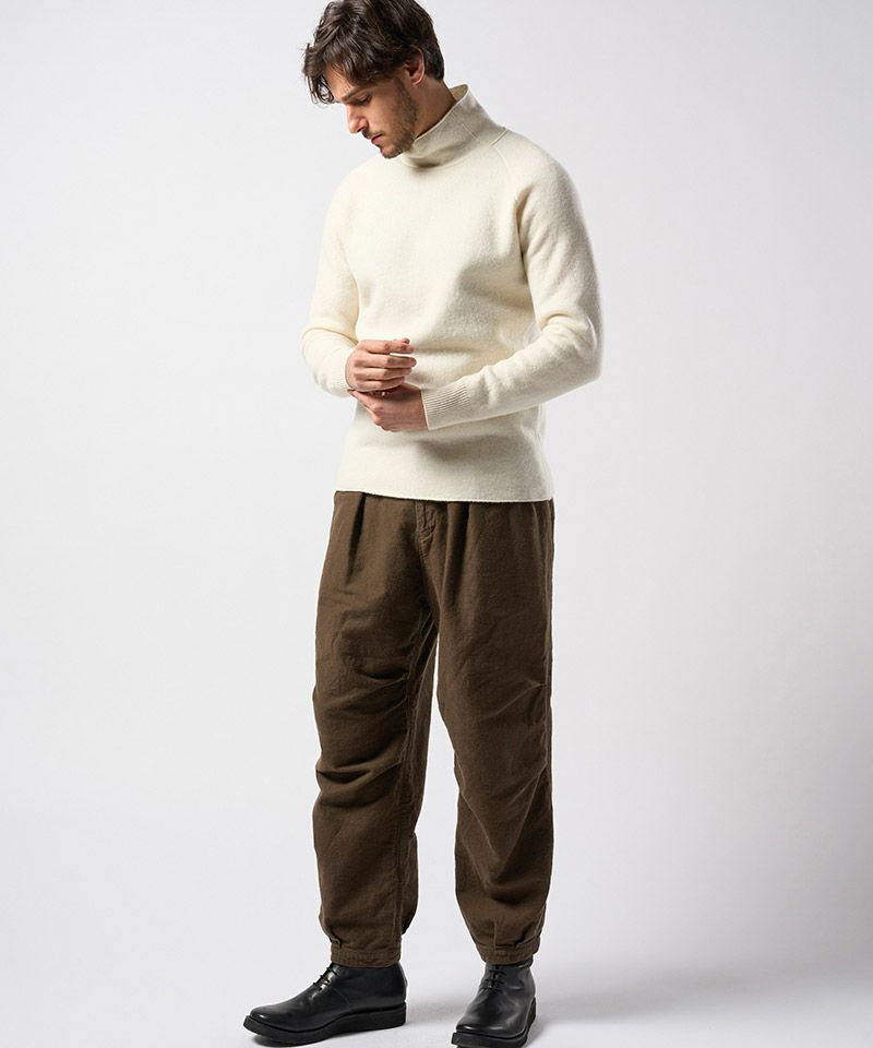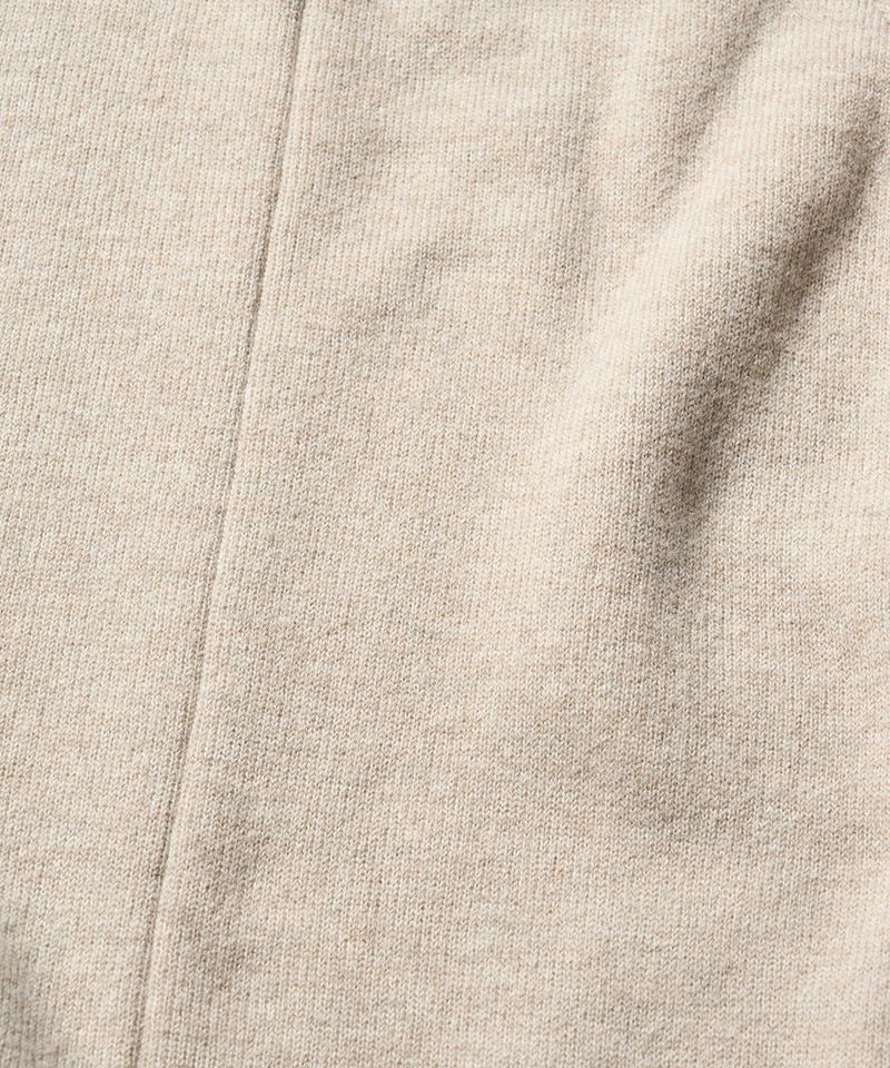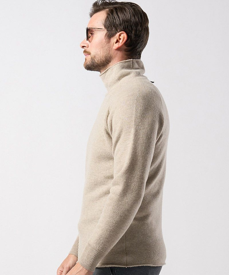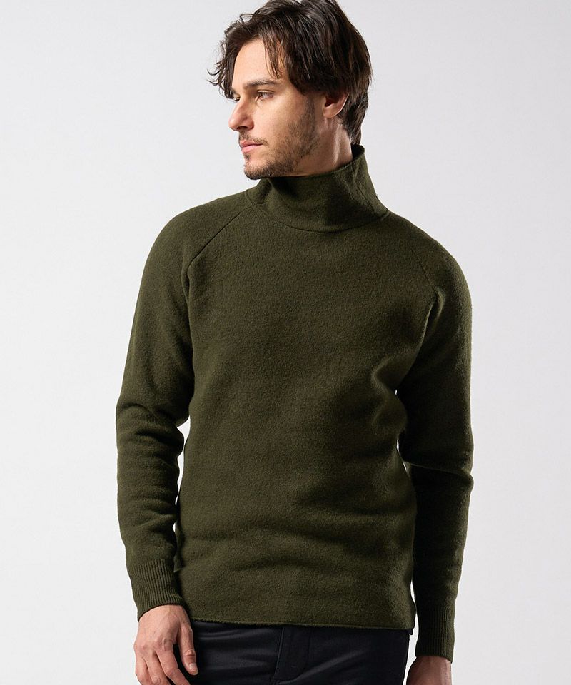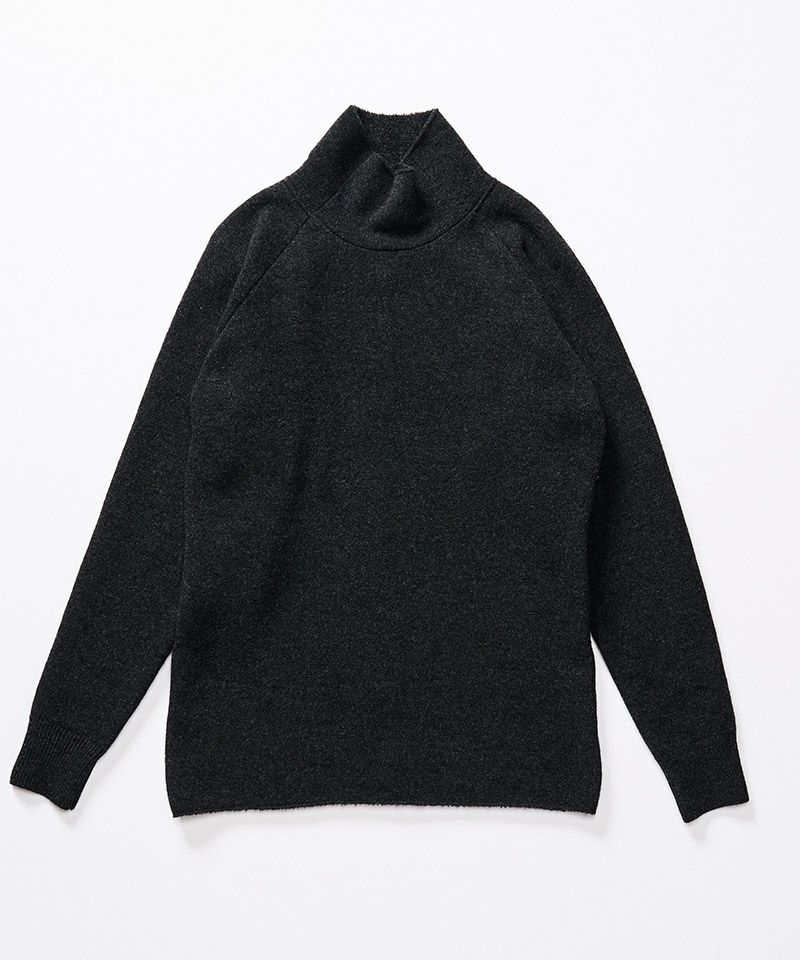 スポンジのように空気をふんだんに含んだふくらみのある軽い肌触りが特徴のウールパイルニットで作製することで、冬のインナーとして重宝する一着に仕上げた。