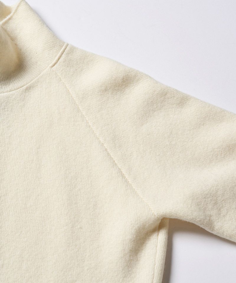 ・ネックから脇までつなげたシームラインがデザインポイントのラグランスリーブのモックネック。