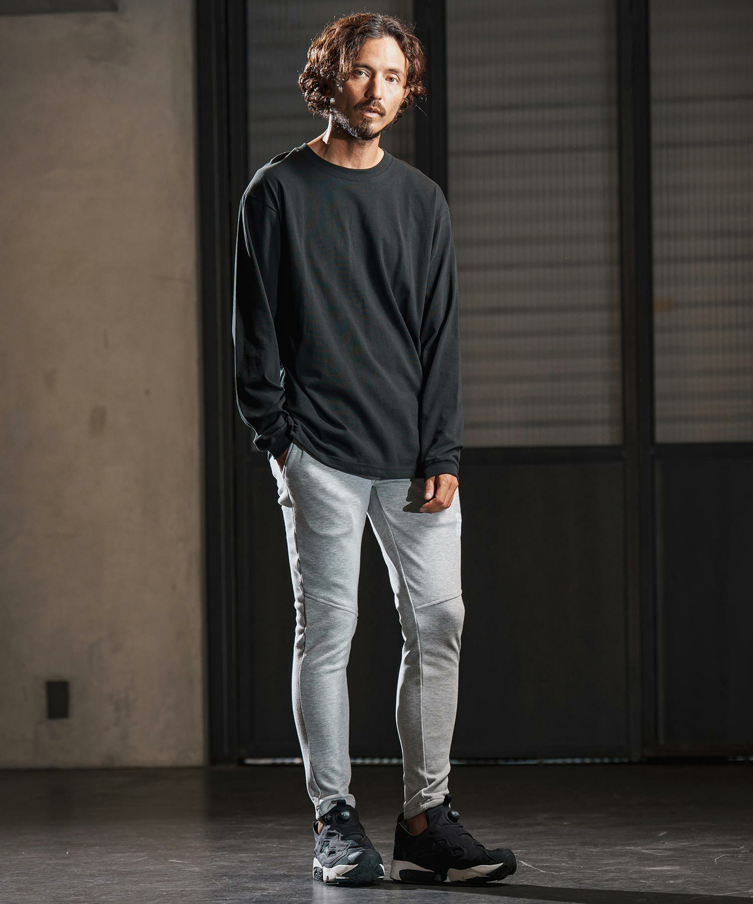 181cmのモデルがLサイズを着用。