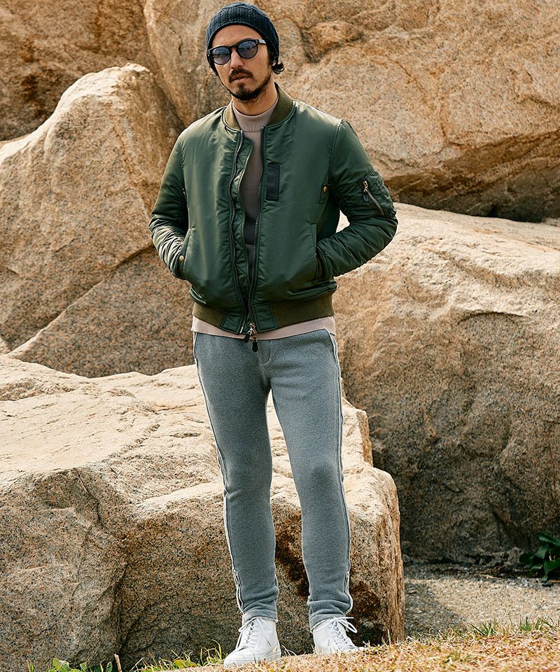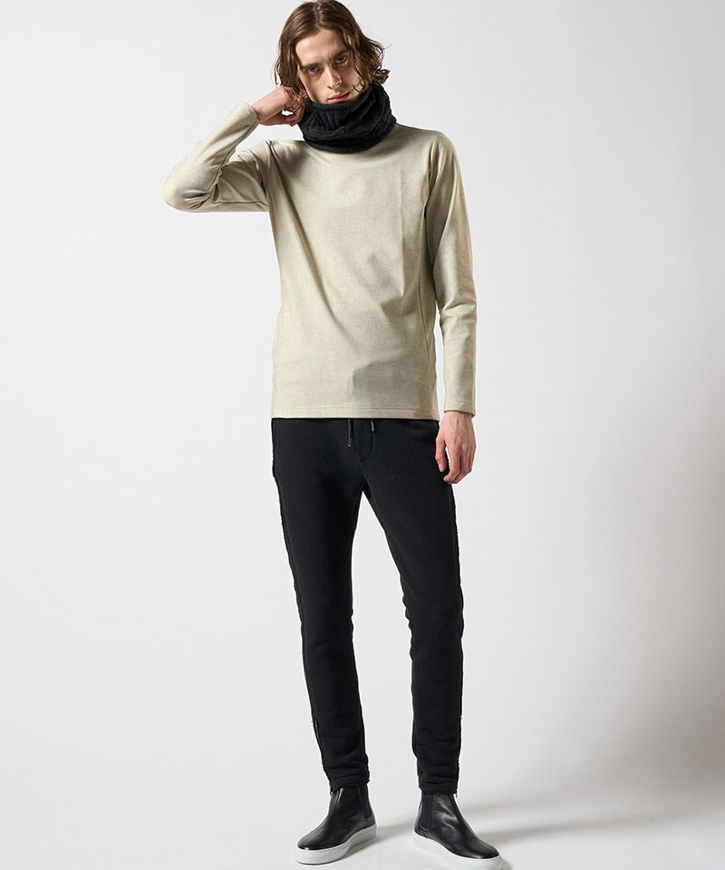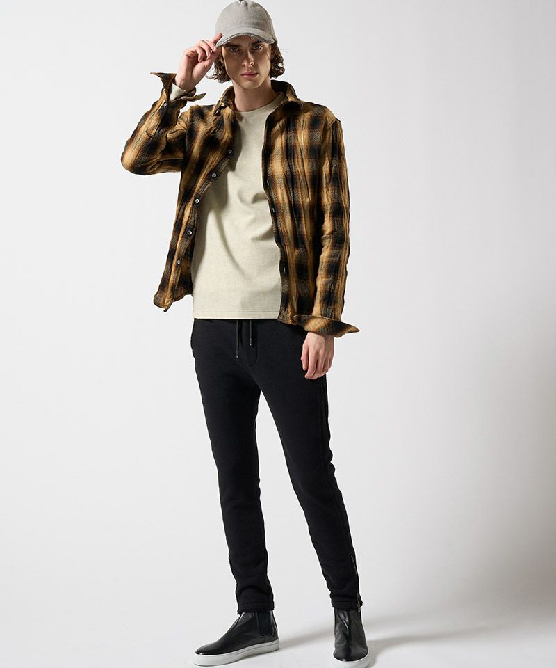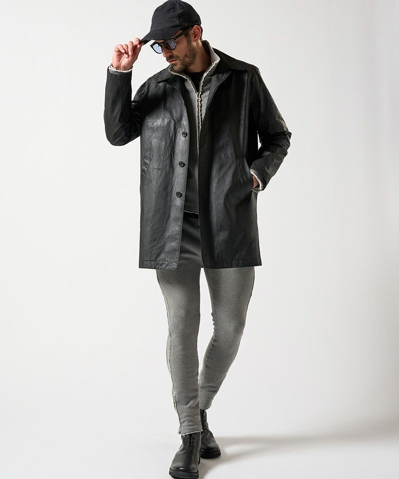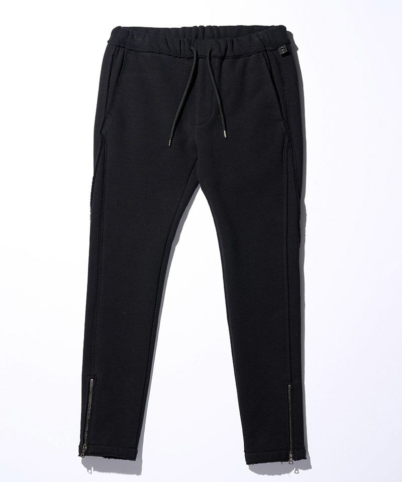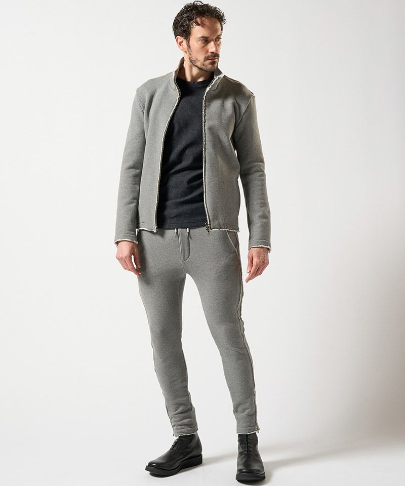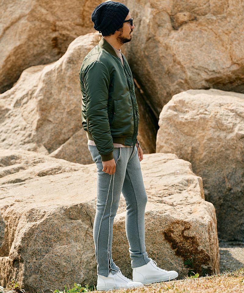 ・裾に配したファスナーは、セットアップ着用時にトップスとのデザインリンクとなっている。