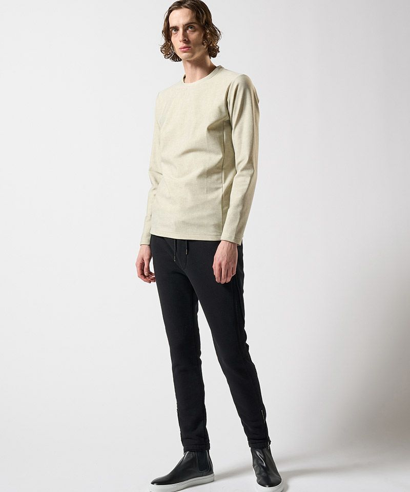 ・素材を考慮した独自のカッティングや附属使いにより、ミニマルな外観を維持しつつもやり過ぎないデザインアクセントを生みだしているスリムパンツ。