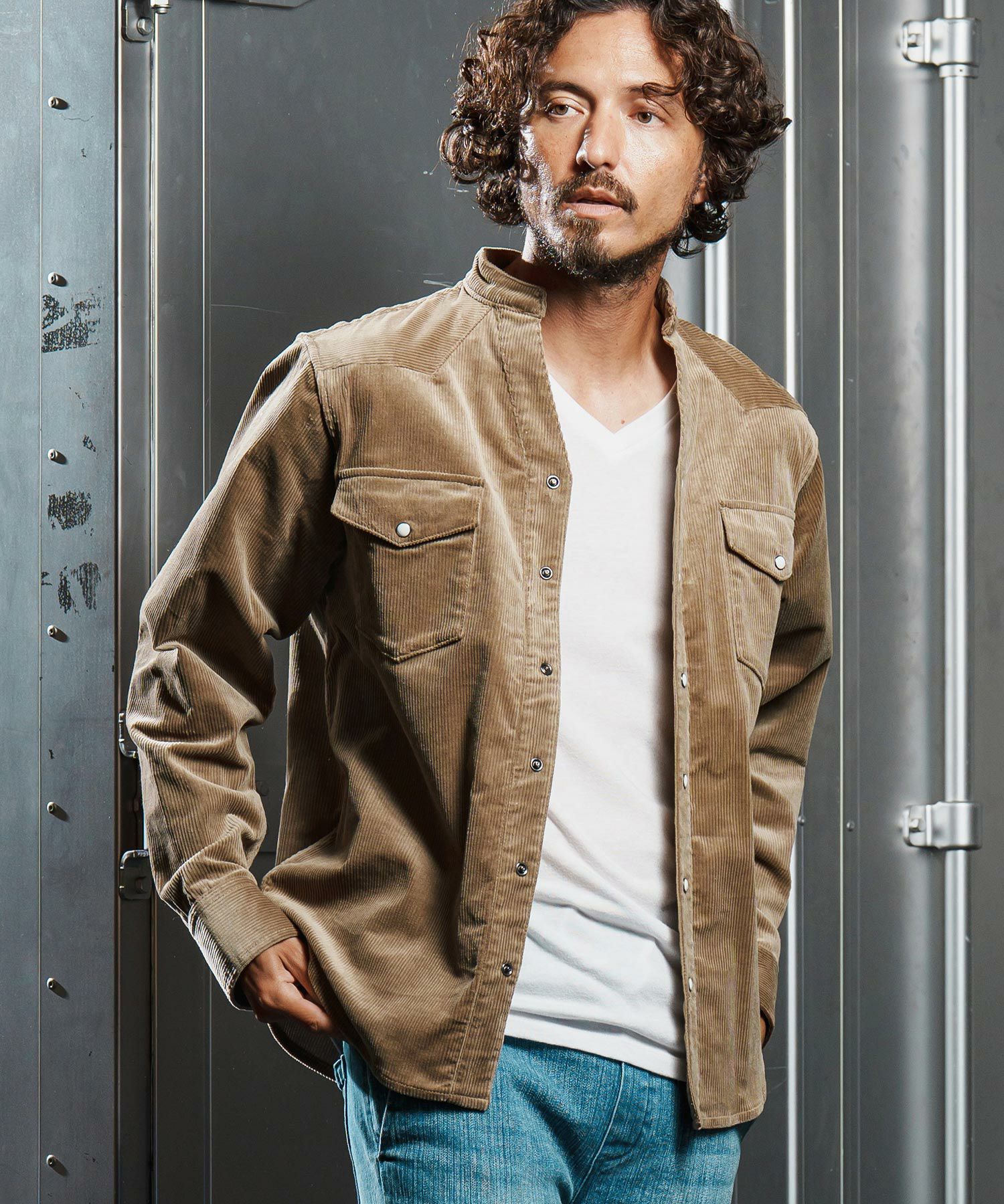 他の画像を見る wjk reluxe 【wjk reluxe】stretch corduroy band collar western shirts ウェスタンシャツ(WR25W-20) ¥ 27,500 税込 お気に入りに登録する
