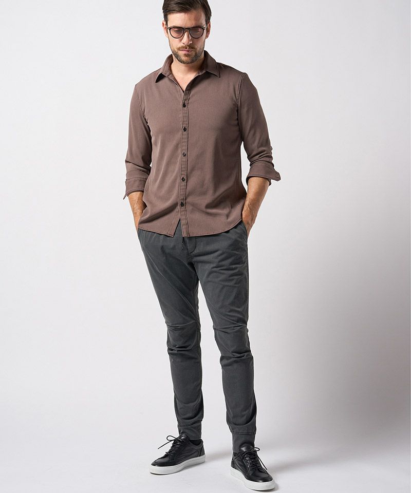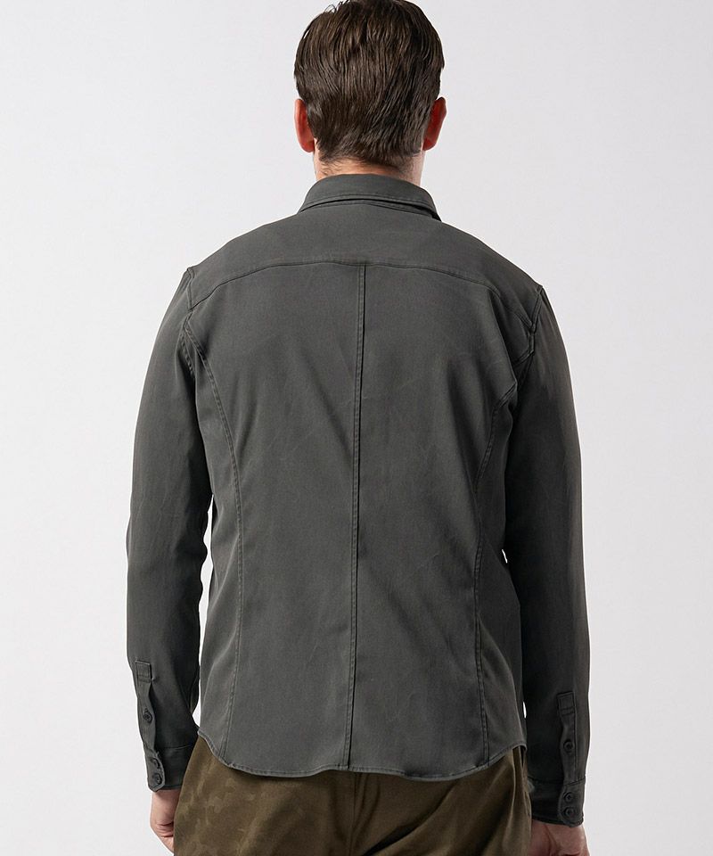 サラッとした軽い着心地の機能素材にwjkの得意とするピグメントダイを施すことで独自の存在感を放つ、夏~秋にかけて活躍する一着に仕上げた。