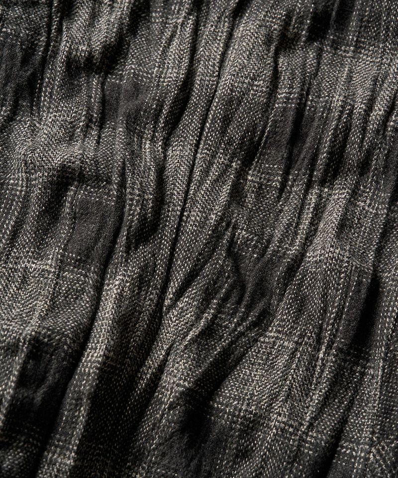 ・全体にシワ加工を施すことで、着用の際ウエストに絶妙なフィット感を生みだす。