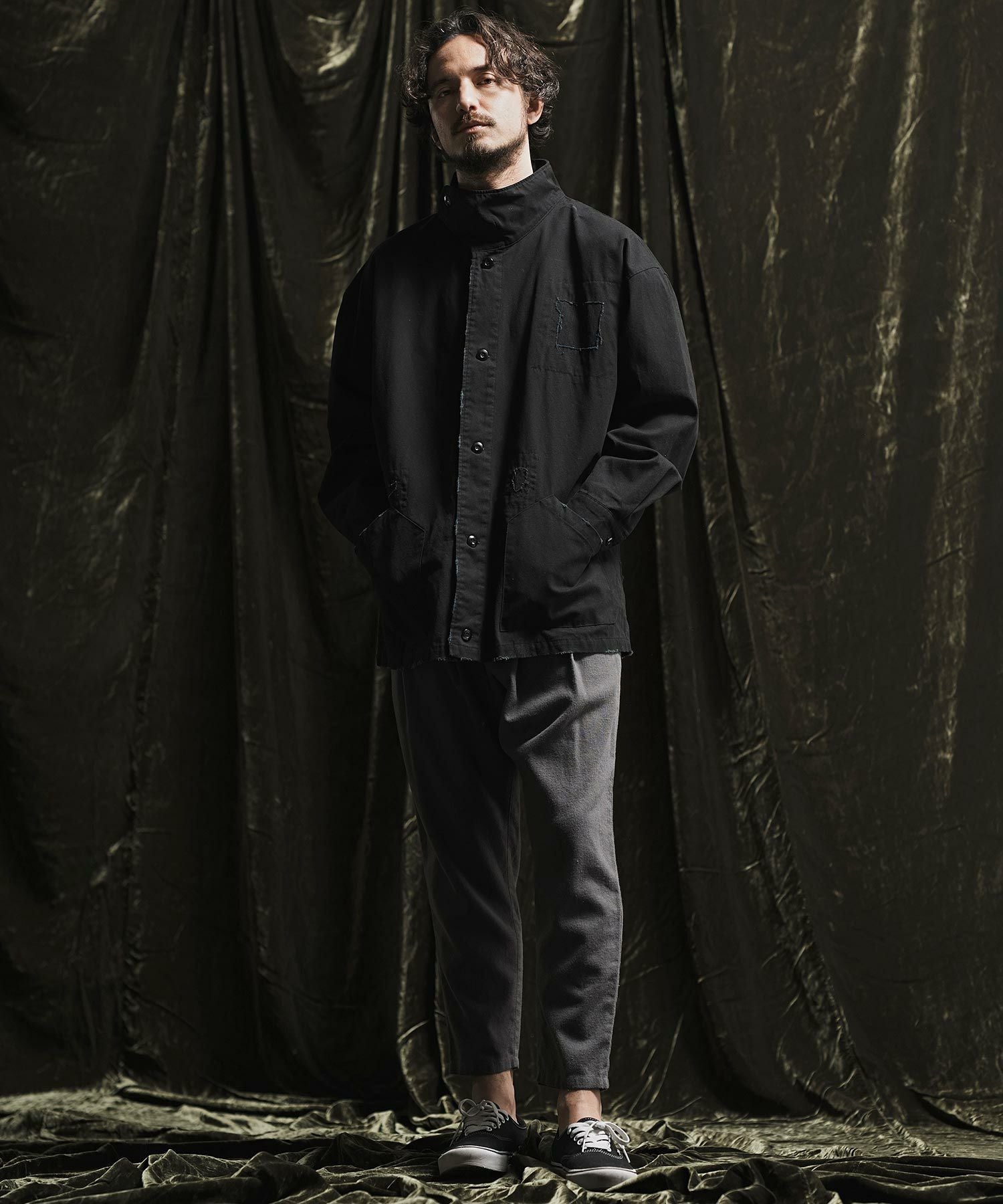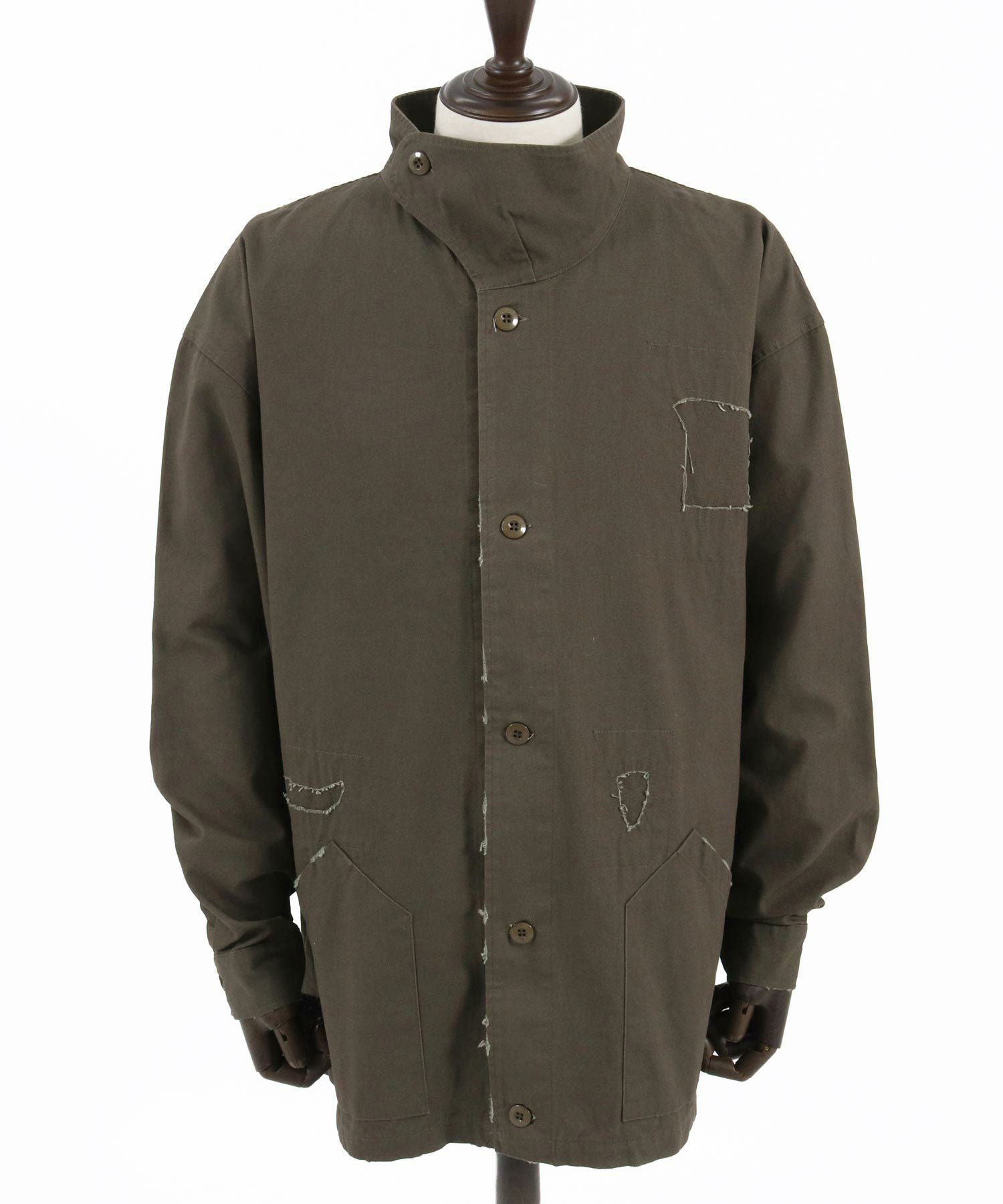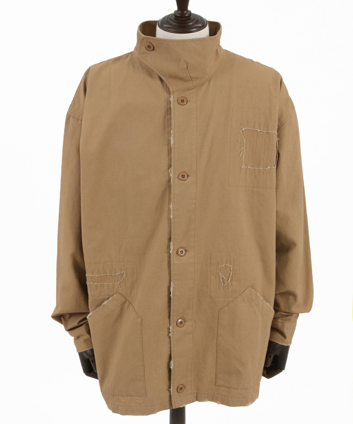 ANGENEHM 50%OFF【ANGENEHM(アンゲネーム)】 Patchwork design deformation standing collar shirt スタンドカラーシャツジャケット(AG02-032sce)